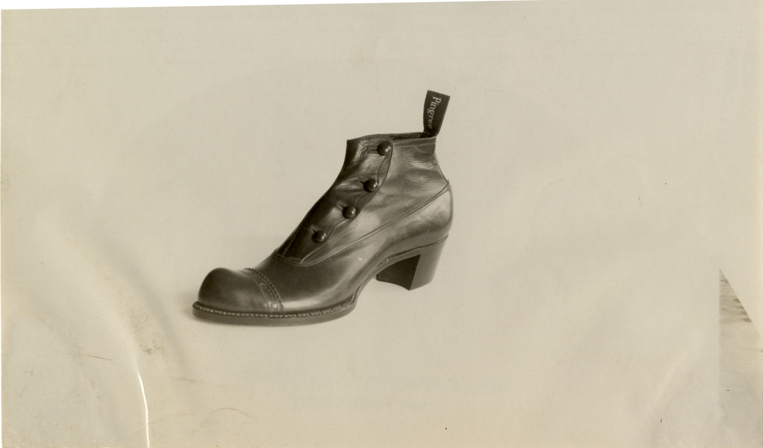 View of shoe manufactured by the Pingree Shoe Company of Detroit, Michigan. Handwritten on back: "Shoes, 1911. Pingree shoes."
