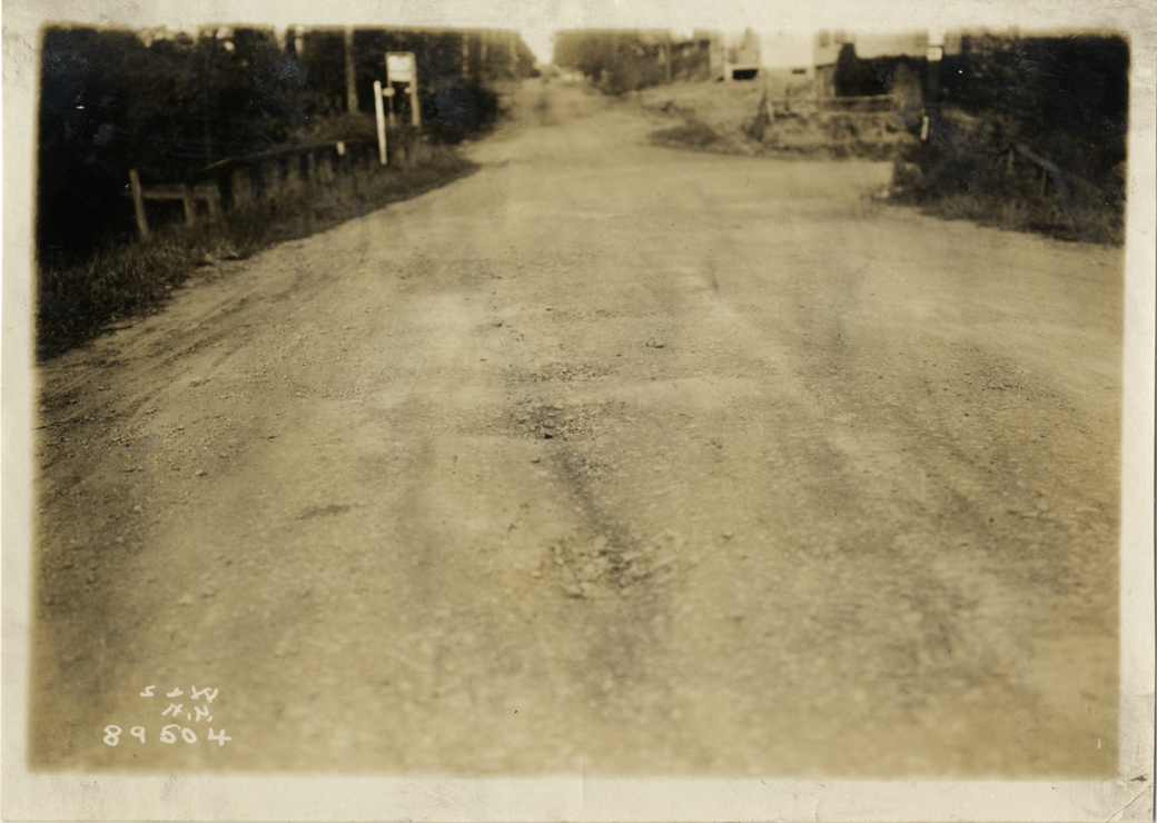 Close-up view of rural dirt road. Printed on front: "S & W, N.Y." Handwritten on back: "Roads, 1915."