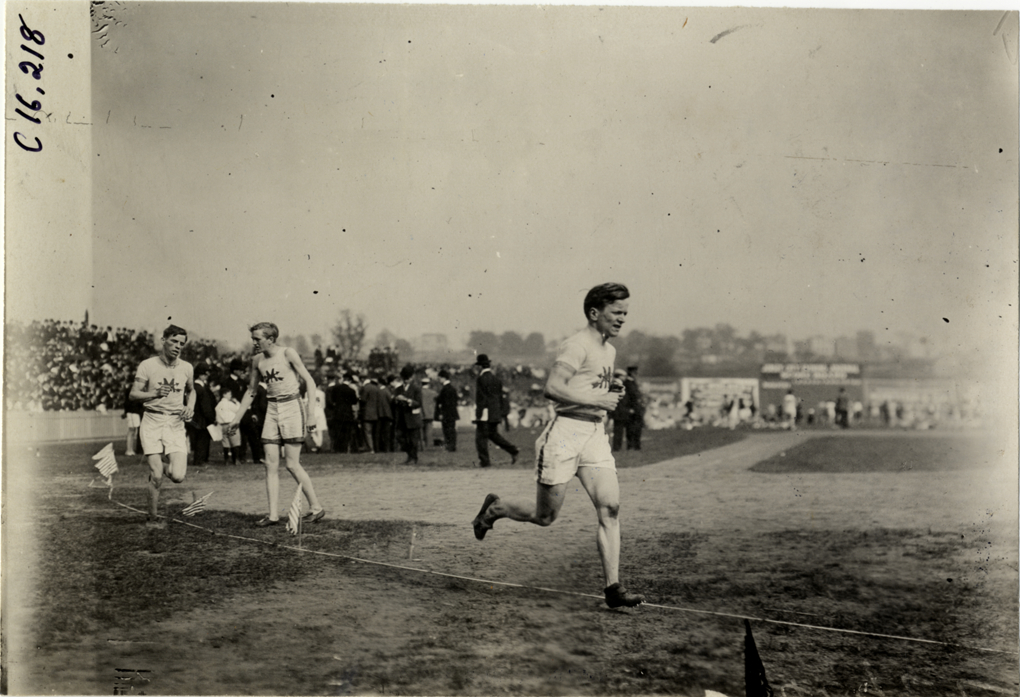 Runners competing in race at track and field event during the 1909 New Jersey Marathon