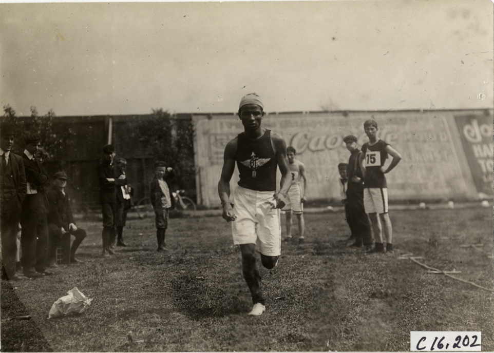 Runner Walker competing in race at track and field event during the 1909 New Jersey Marathon