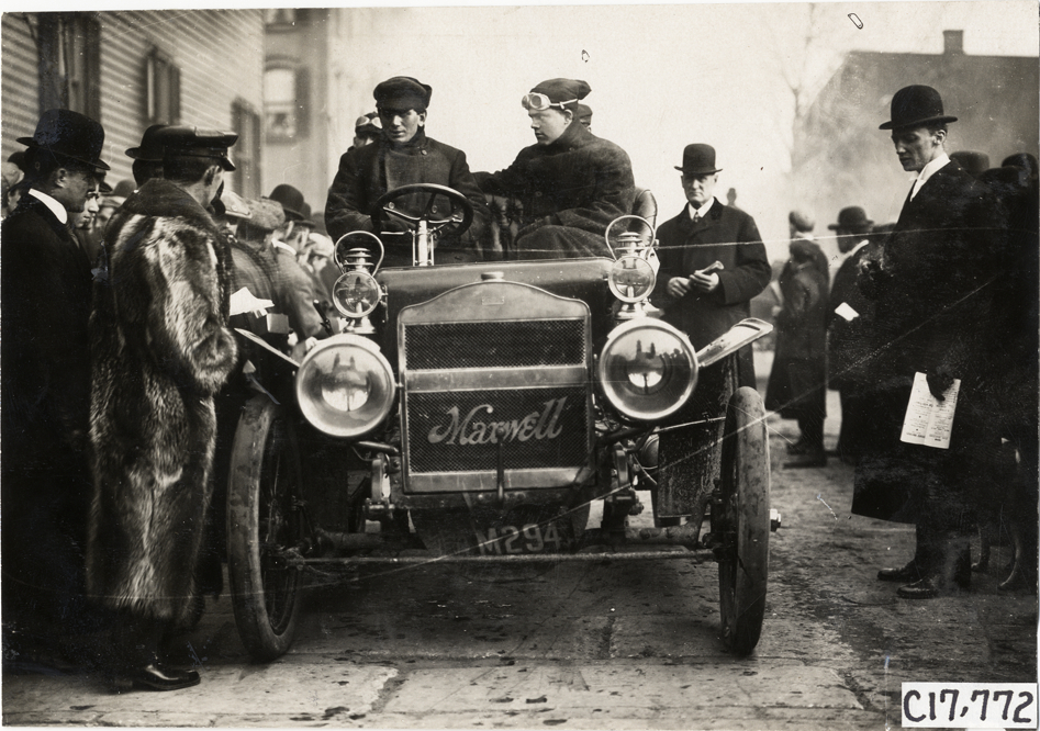 Motorists in Maxwell automobile, 1907 New Jersey Automobile and Motor Club 24-hour endurance run