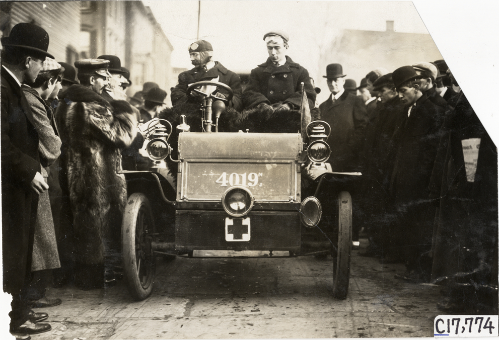 Motorists in automobile, 1907 New Jersey Automobile and Motor Club 24-hour endurance run