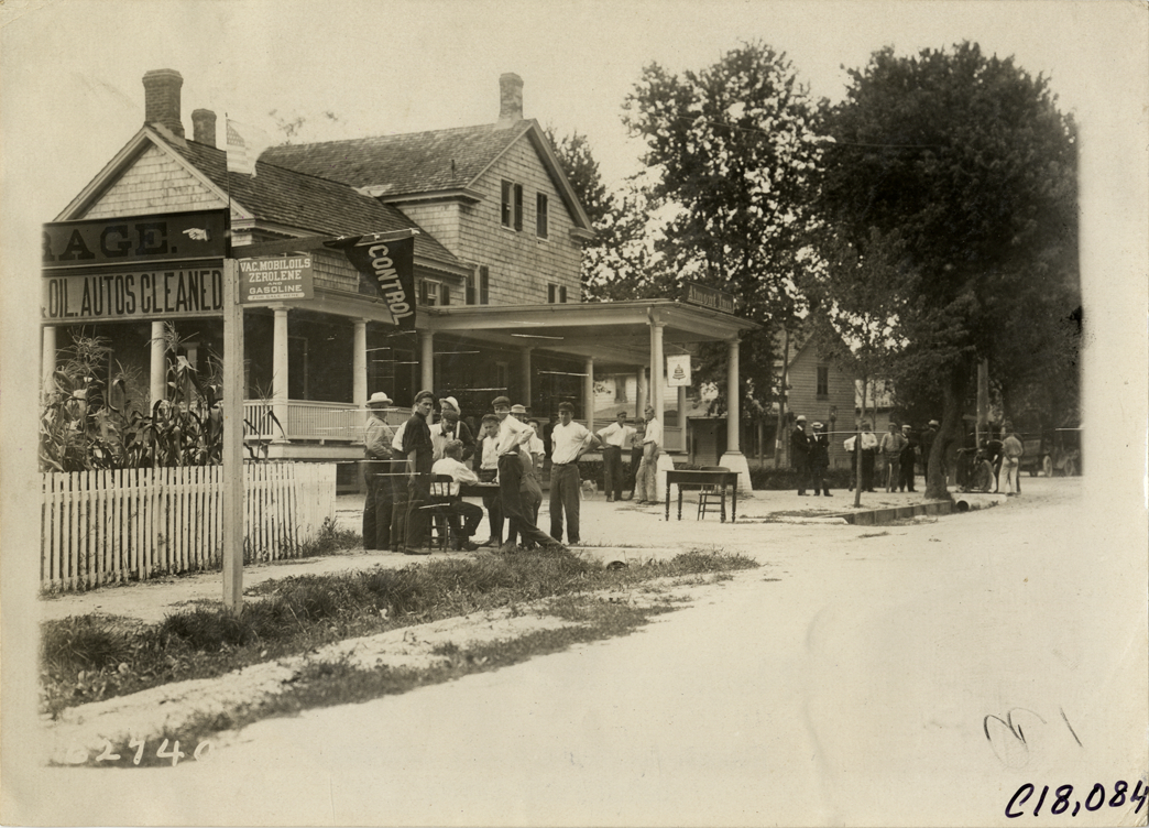 Spectators in front of Almont Inn, 1910 Federation of American Motorcyclists Endurance Run