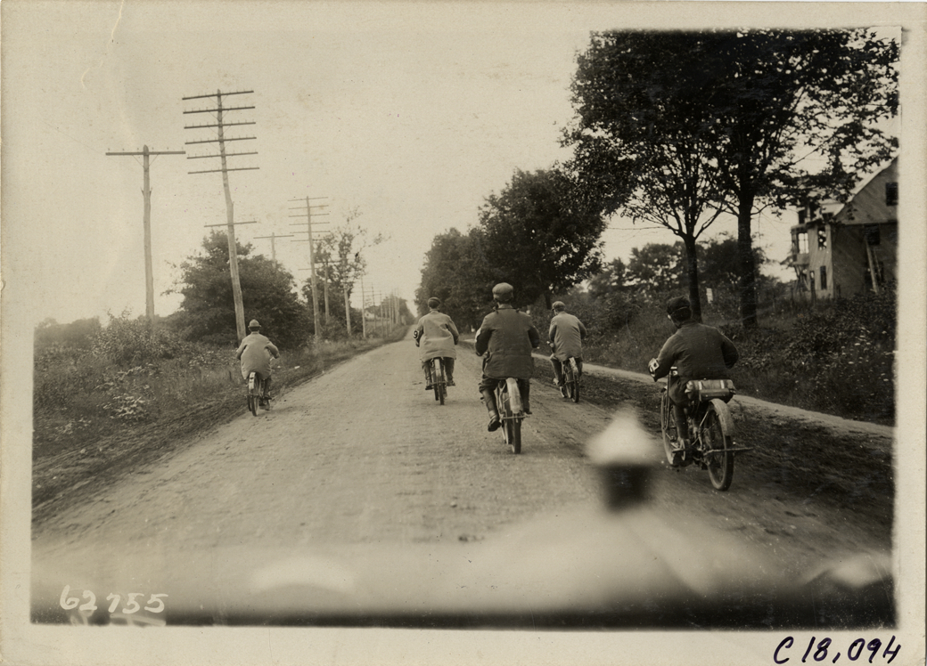 Men riding motorcycles, 1910 Federation of American Motorcyclists Endurance Run