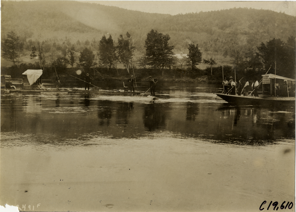 Log drivers on river, 1906 Glidden pathfinding expedition