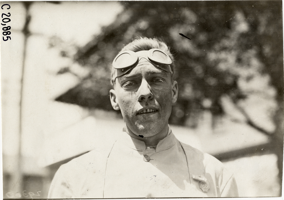 Close-up view of driver during the 1908 Glidden Tour. Handwritten on back: "Tours--Glidden Tour, 1908."