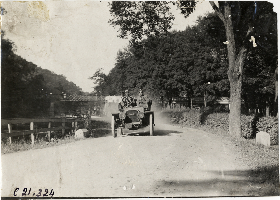 Motorists in Haynes automobile at Bedford, Pennsylvania, 1908 Glidden Tour