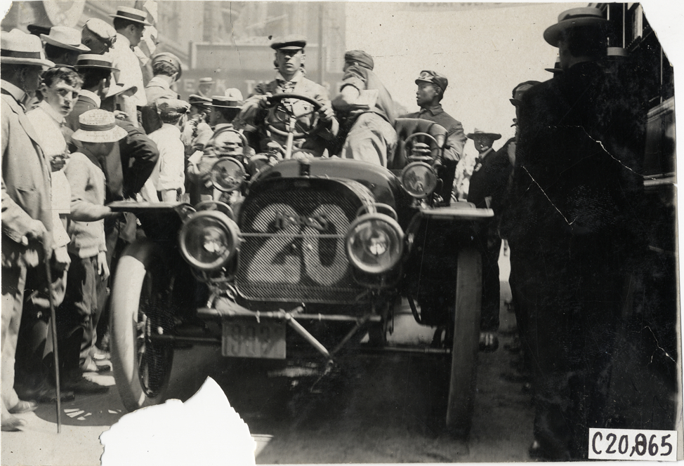 Motorists in Haynes automobile at Buffalo, New York, 1908 Glidden Tour