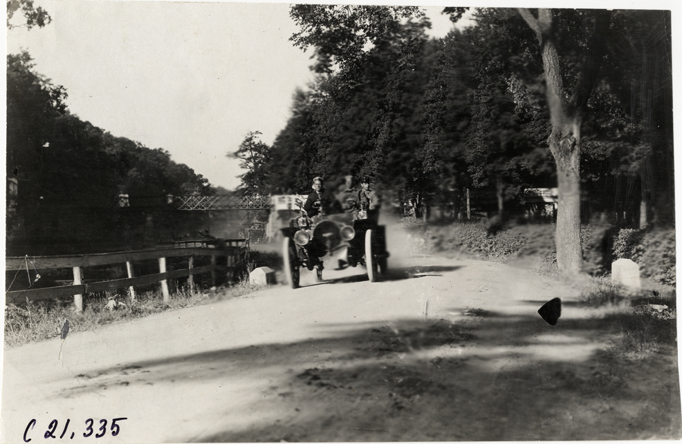 Motorists in Franklin automobile at Bedford, Pennsylvania, 1908 Glidden Tour