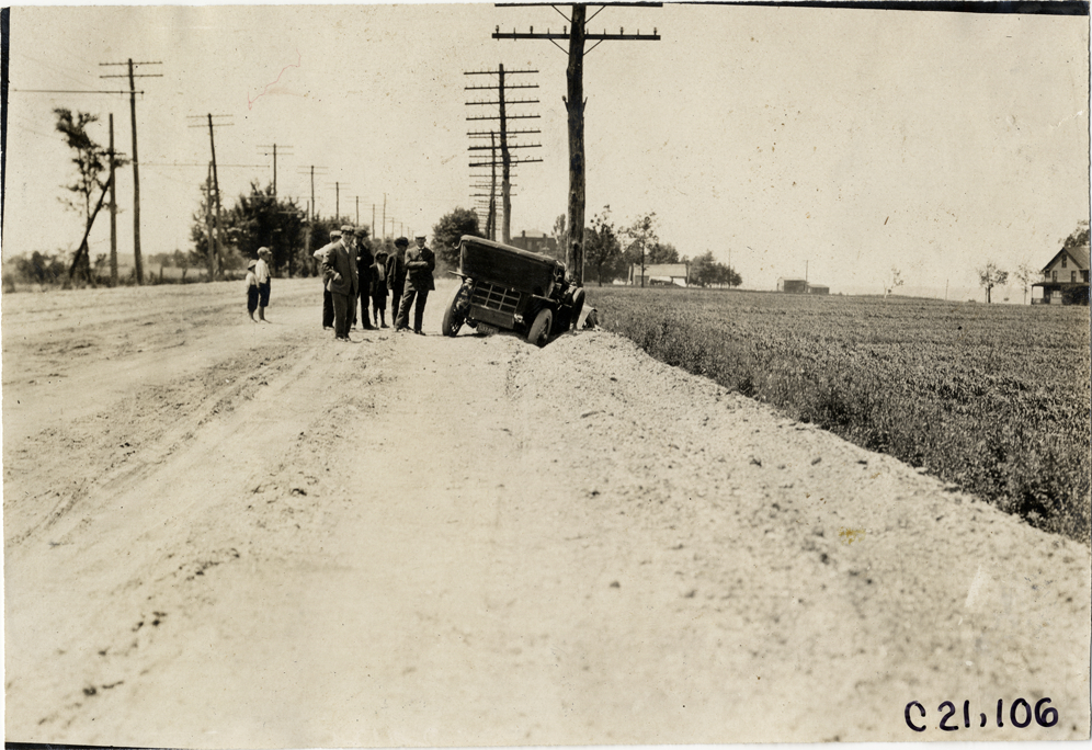 Automobile accident on roadside, 1908 Glidden Tour