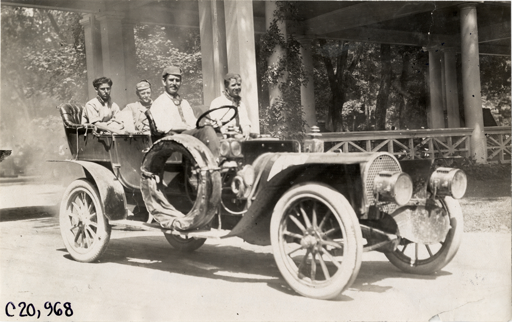 Motorists in Franklin automobile at Bedford, Pennsylvania, 1908 Glidden Tour