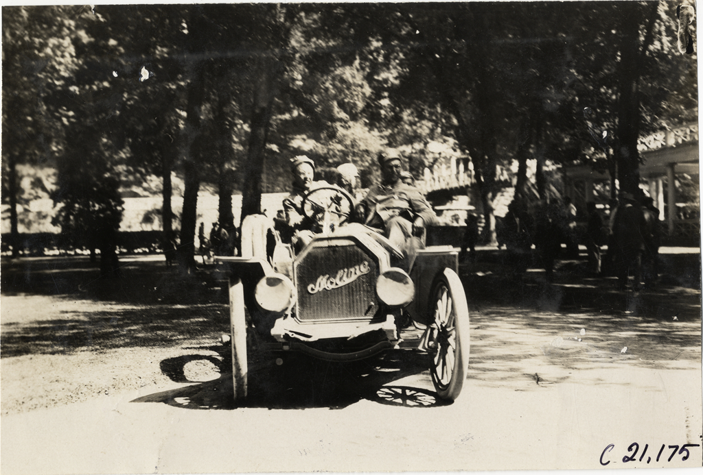 Motorists in Moline automobile at Bedford, Pennsylvania, 1908 Glidden Tour