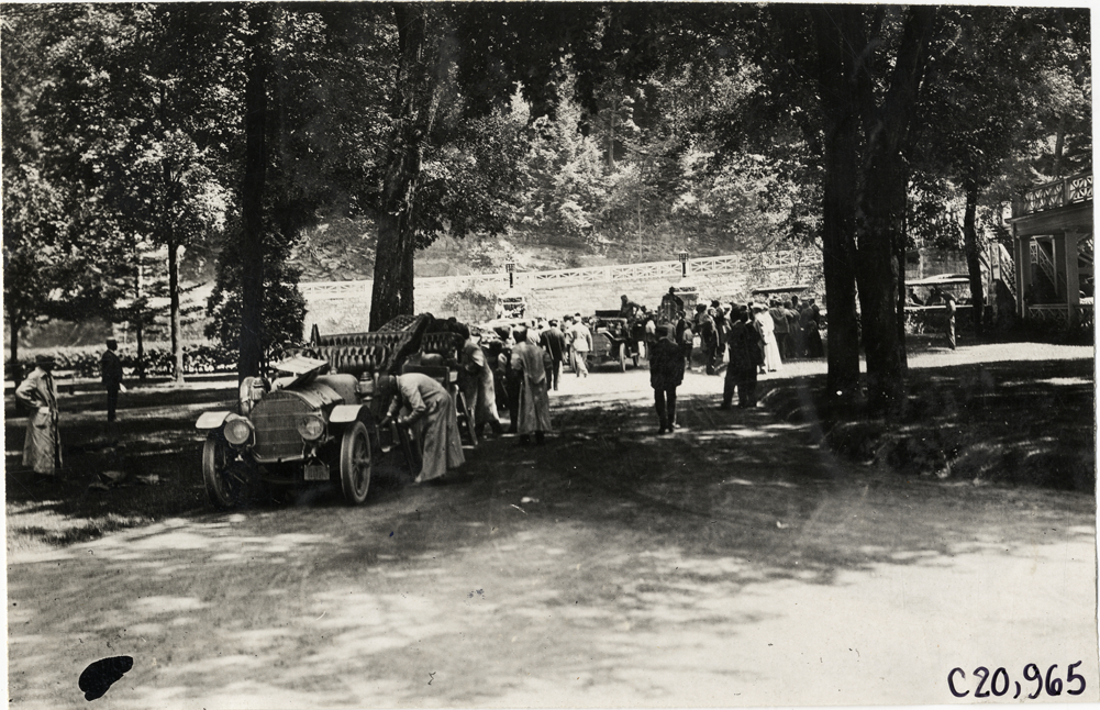 Motorists and automobiles on grounds of Bedford Springs Hotel at Bedford, Pennsylvania, 1908 Glidden Tour