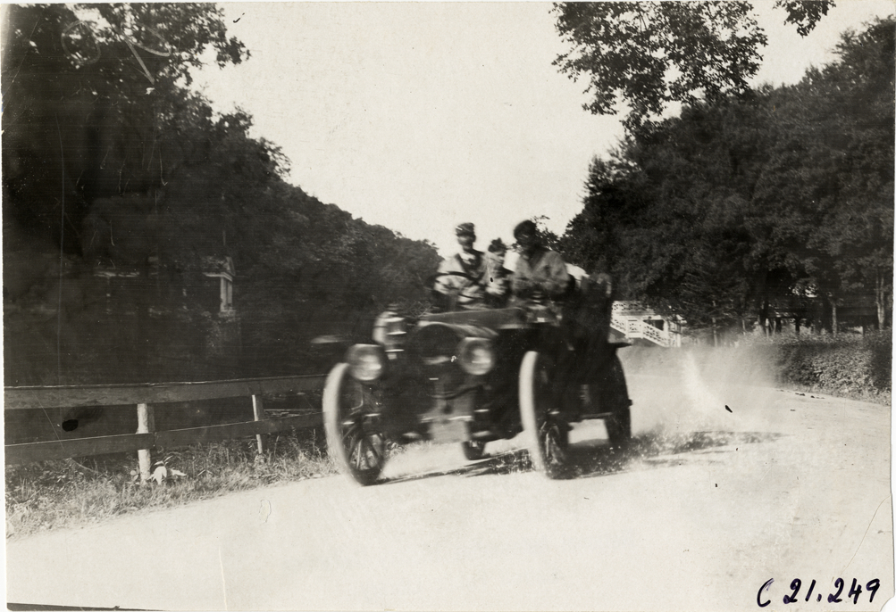 Motorists in Franklin automobile at Bedford, Pennsylvania, 1908 Glidden Tour
