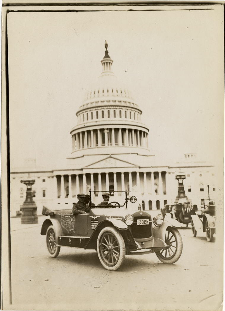 Hupmobile automobile in front of U.S. Capitol building, Hupmobile United American Tour