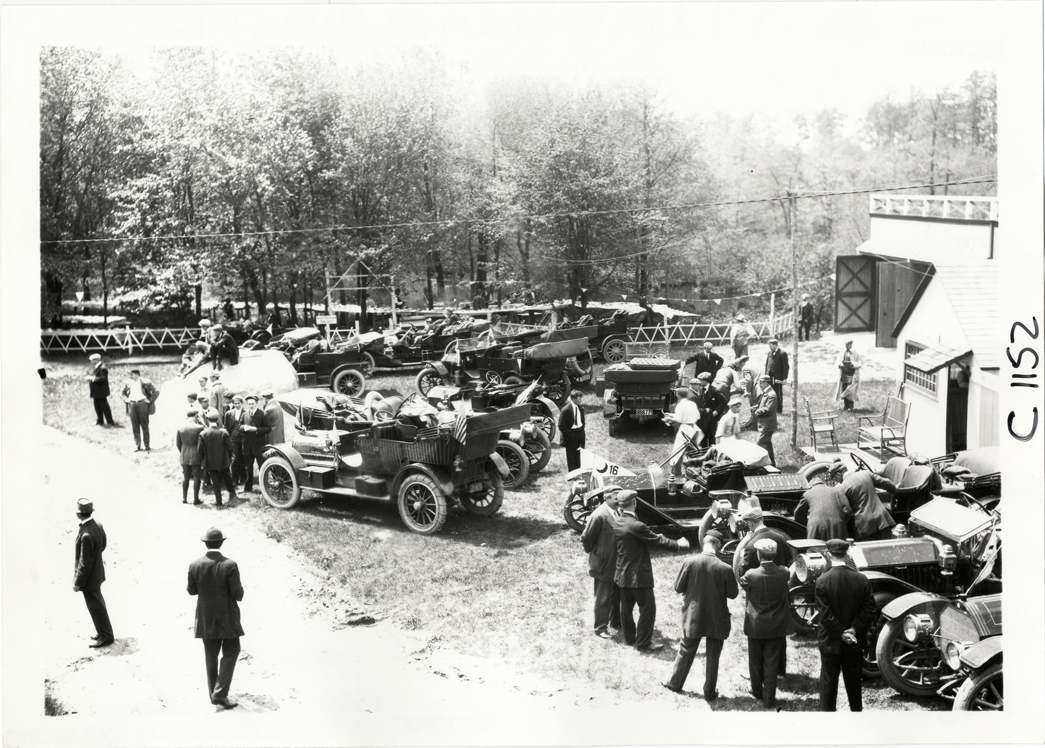 Motorists and automobiles on the grounds of the Anchorage Inn, 1910 Long Island Endurance Run