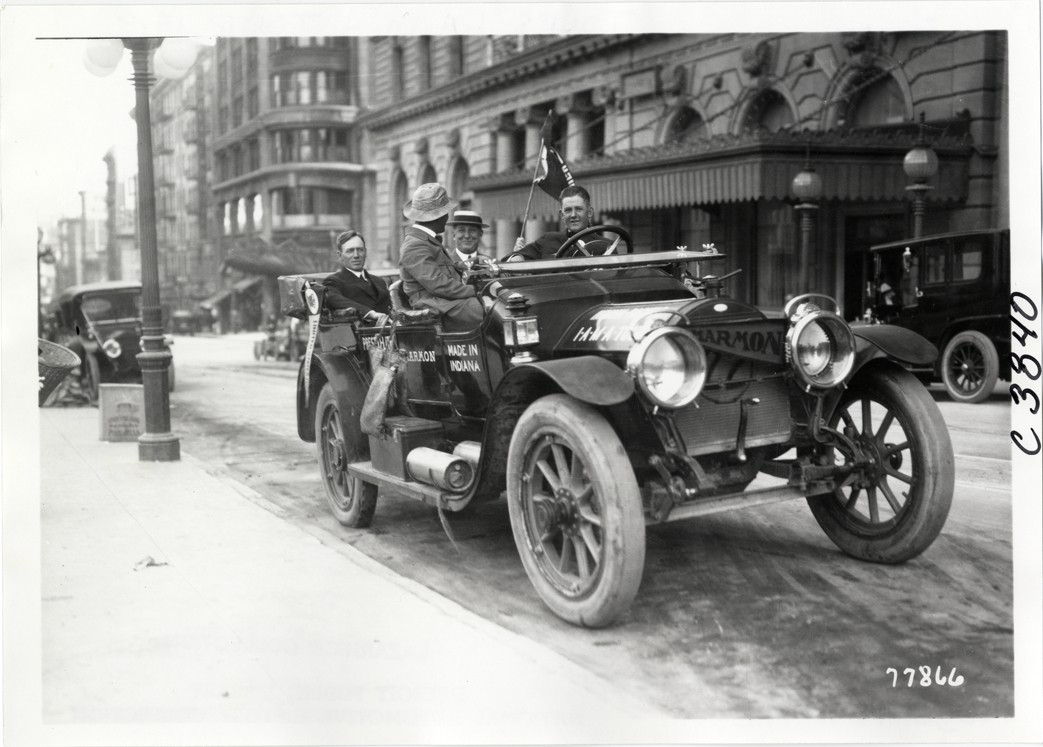 Motorists in Marmon automobile, 1913 Indiana Automobile Manufacturers' Association tour