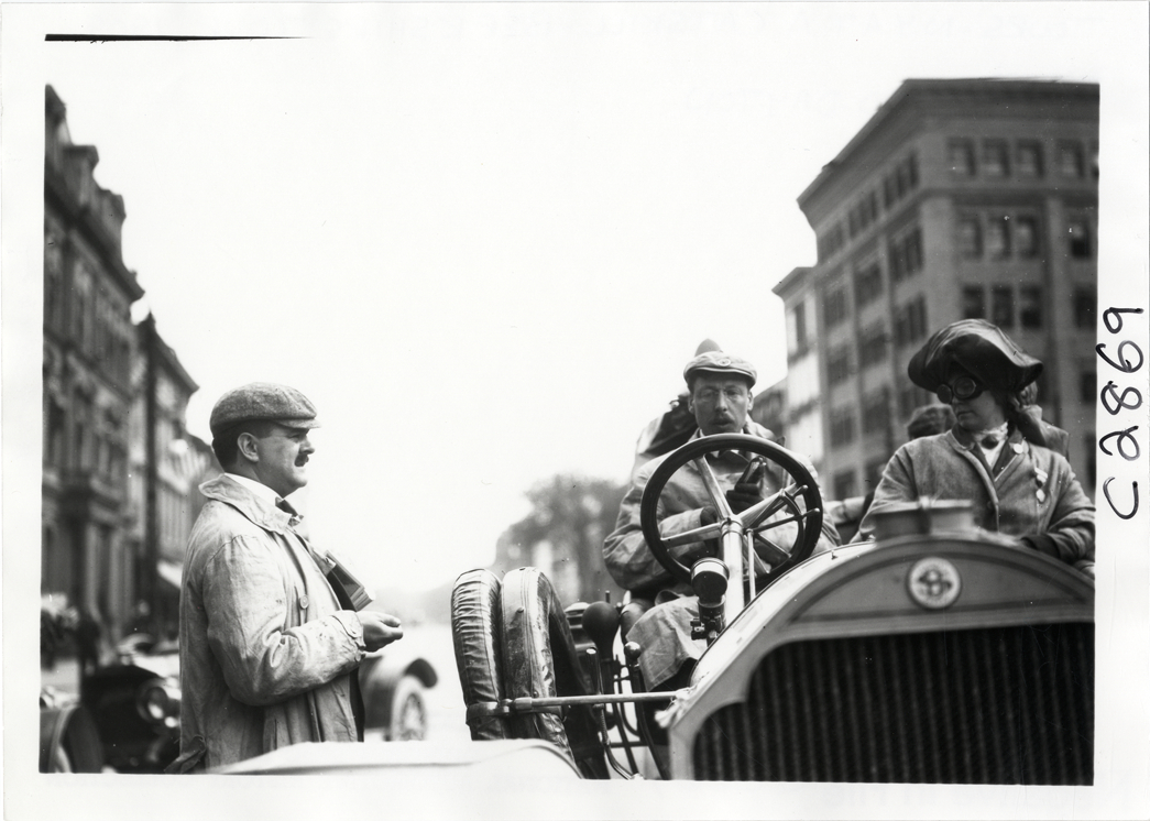 Motorists in Stoddard-Dayton automobile, 1909 Catskill-Berkshire Tour