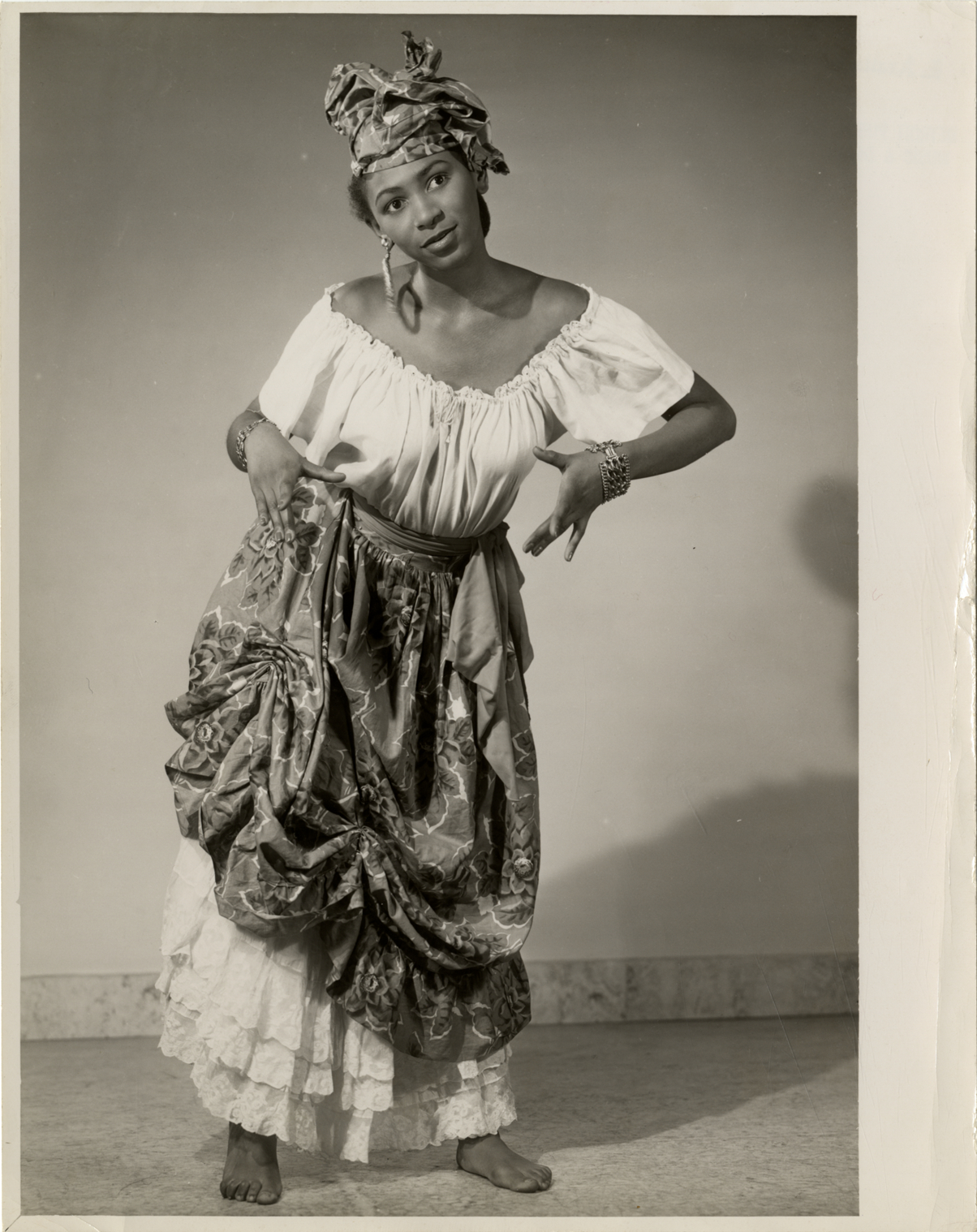 Portrait of actress Josephine Premice. Stamped on back: "Photograph by Alfredo Valente." Handwritten on back: "Josephine Premice."