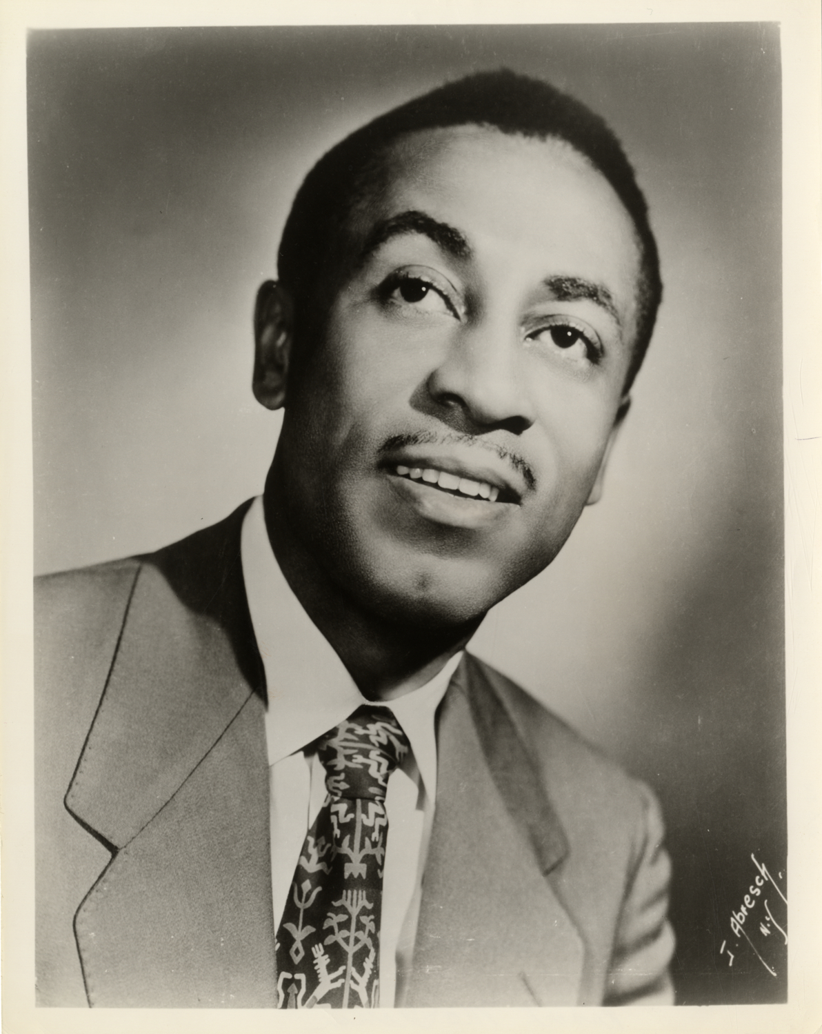 Portrait of baritone Robert McFerrin. Printed on front: "J. Abresch, N.Y." Stamped on back: "Eastman Boomer Associates, 119 West 57 Street, New York 19, N.Y." Handwritten on back: "Robert McFerrin."