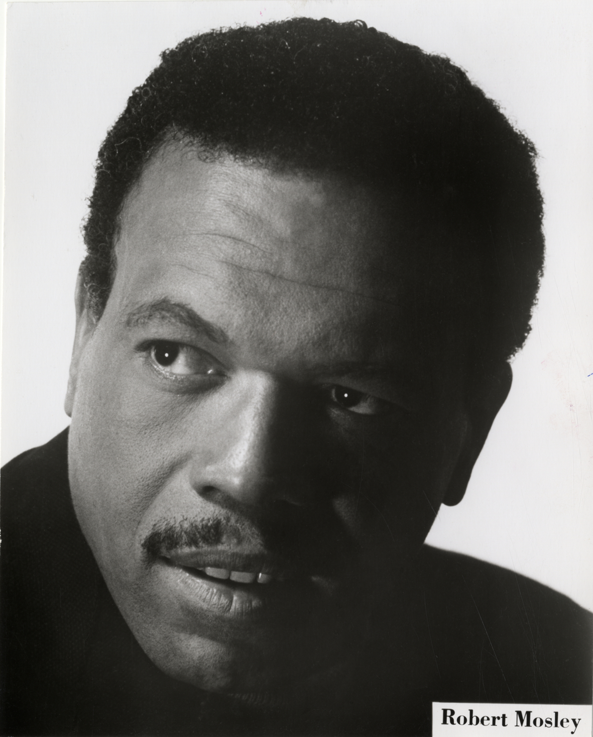 Portrait of baritone Robert Mosley. Printed on front: "Robert Mosley." Stamped on back: "Hans J. Hofmann, management for opera and concert. New York, N.Y. 10019. 200 West 58th Street, telephone 212 Circle 6-1557." Handwritten on back: "Robert Mosley, baritone."