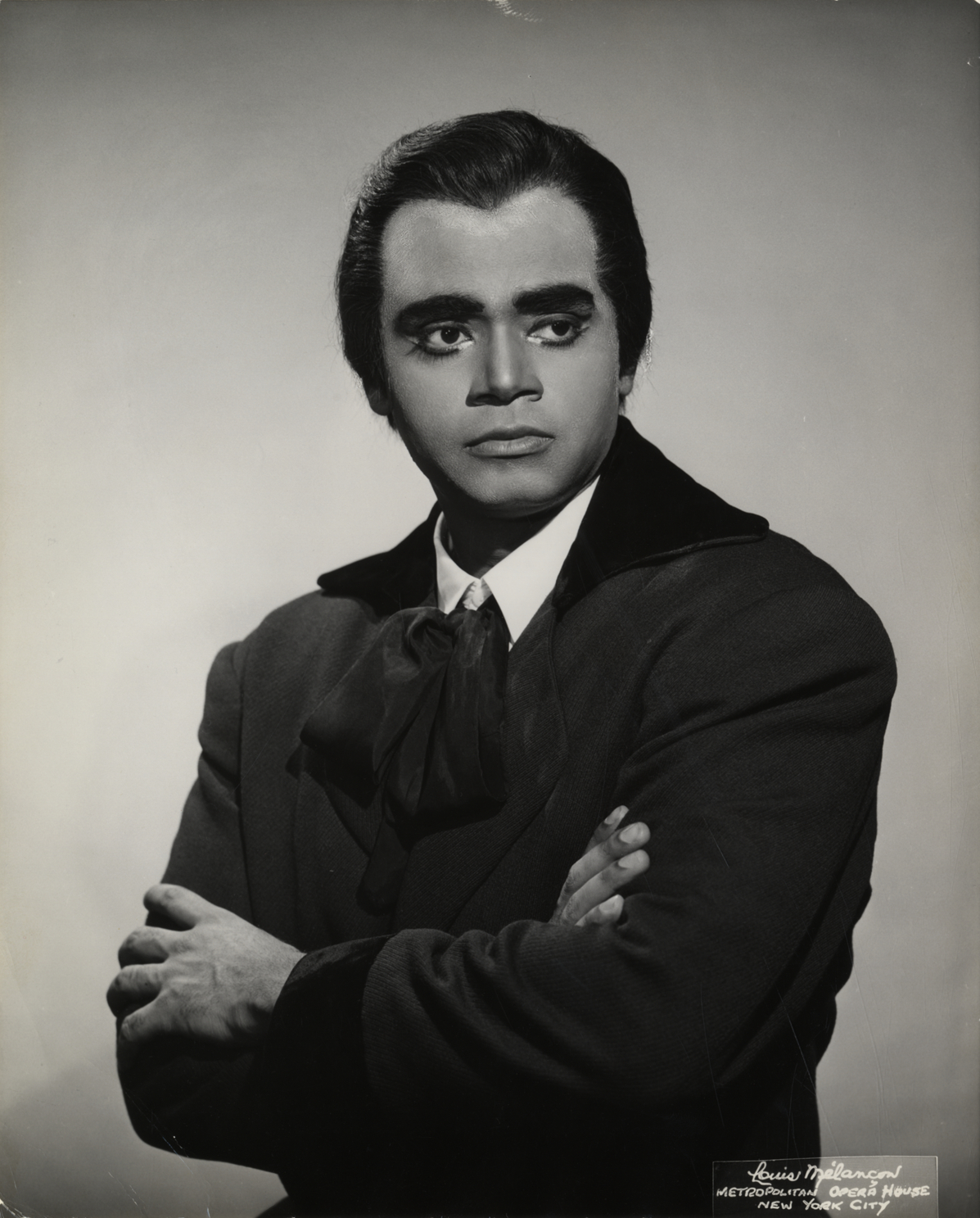 Portrait of tenor George Shirley as Rodolfo in Puccini's opera, "La boheme." Printed on front: "Louis Melancon. Metropolitan Opera house, New York City." Stamped on back: "The use of this photograph is granted with the understanding that it is for your publication only, and will not be syndicated, rented, loaned, or used for advertising purposes without written permission. When published, the customary credit line will be appreciated with the name in full: Louis Melancon. Louis Melancon, New York, N.Y." Handwritten on back: "George Shirley, Rodolfo, 'La boheme.'"