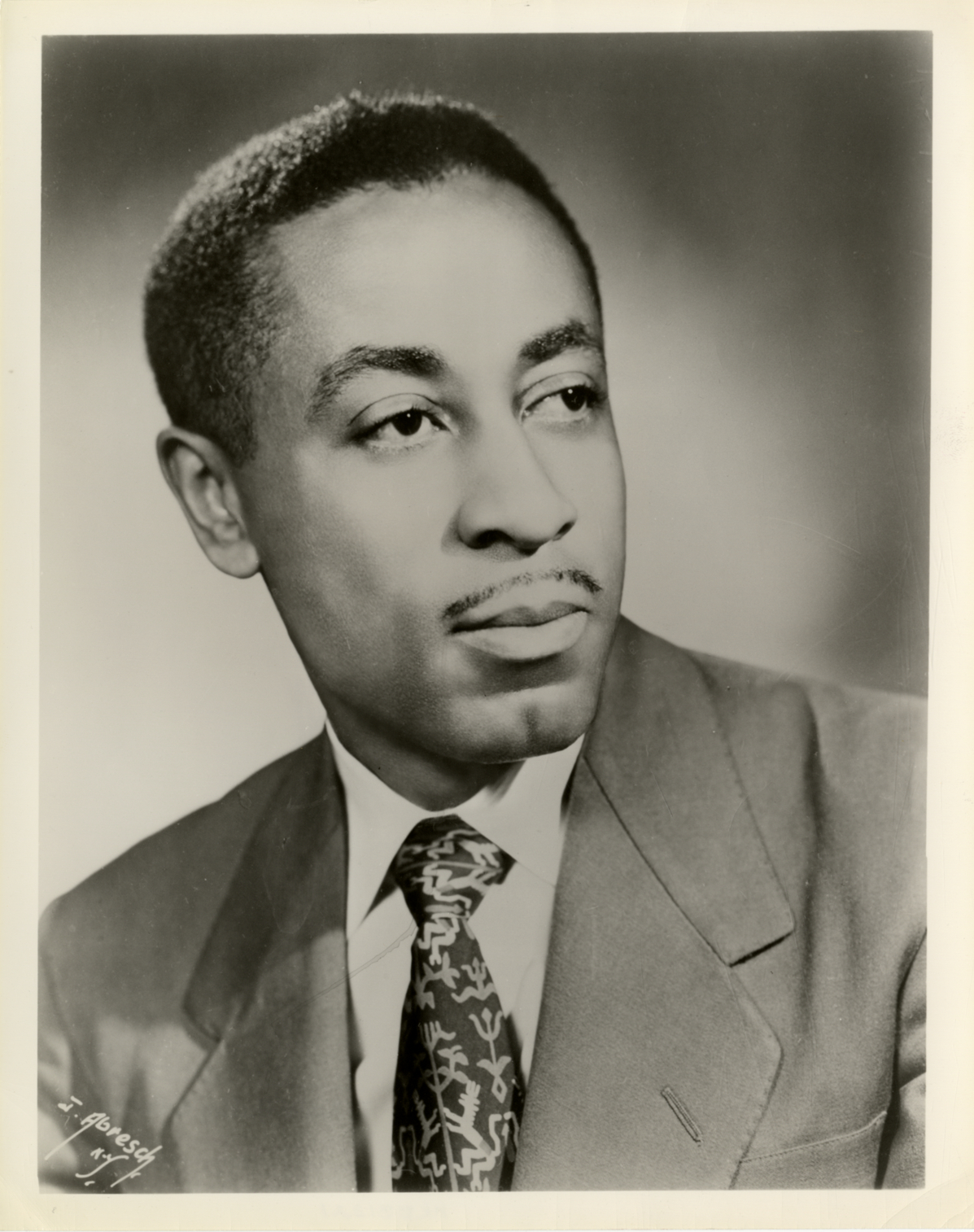 Portrait of baritone Robert McFerrin. Printed on front: "J. Abresch, N.Y." Stamped on back: "Robert McFerrin."