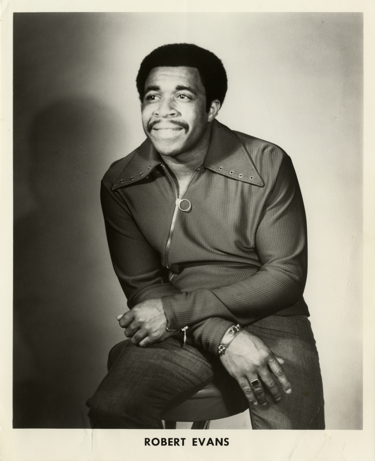 Portrait of singer Robert Evans, who is also known by the stage name, Lee Edwards. Printed on front: "Robert Evans." Handwritten on back: "New stage name, Lee Edwards."