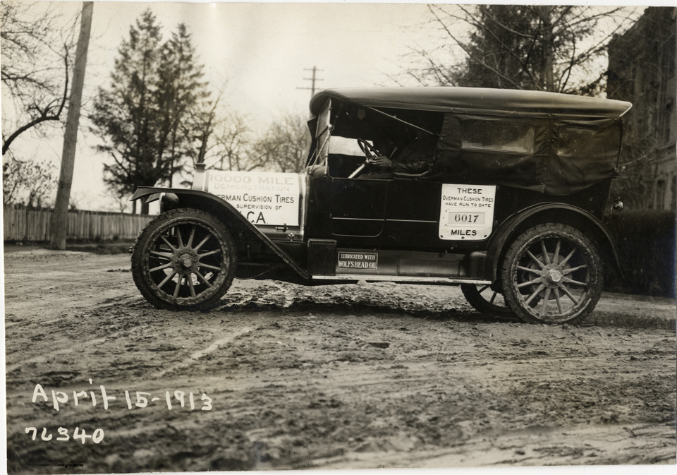 Motorists in National automobile, 1913 Overman tires 10,000 mile demonstration