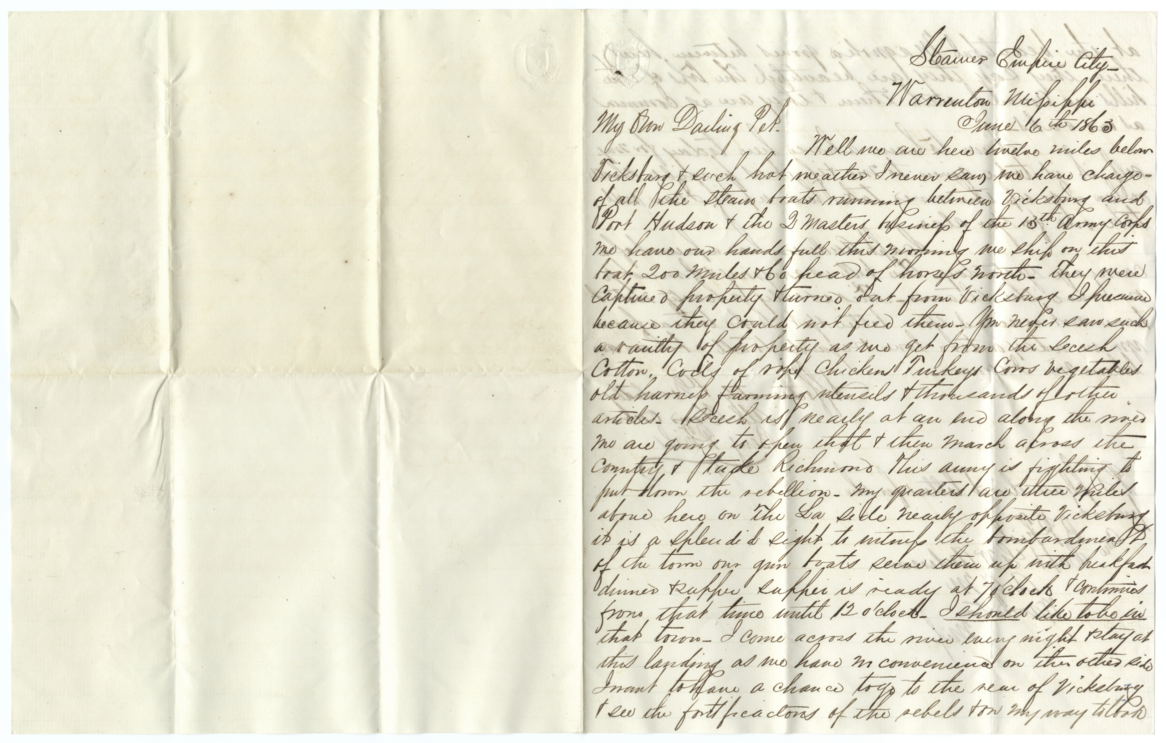 Letter to Julia Smith from Benjamin Fish discussing Vicksburg, Richmond, and the property they have captured.