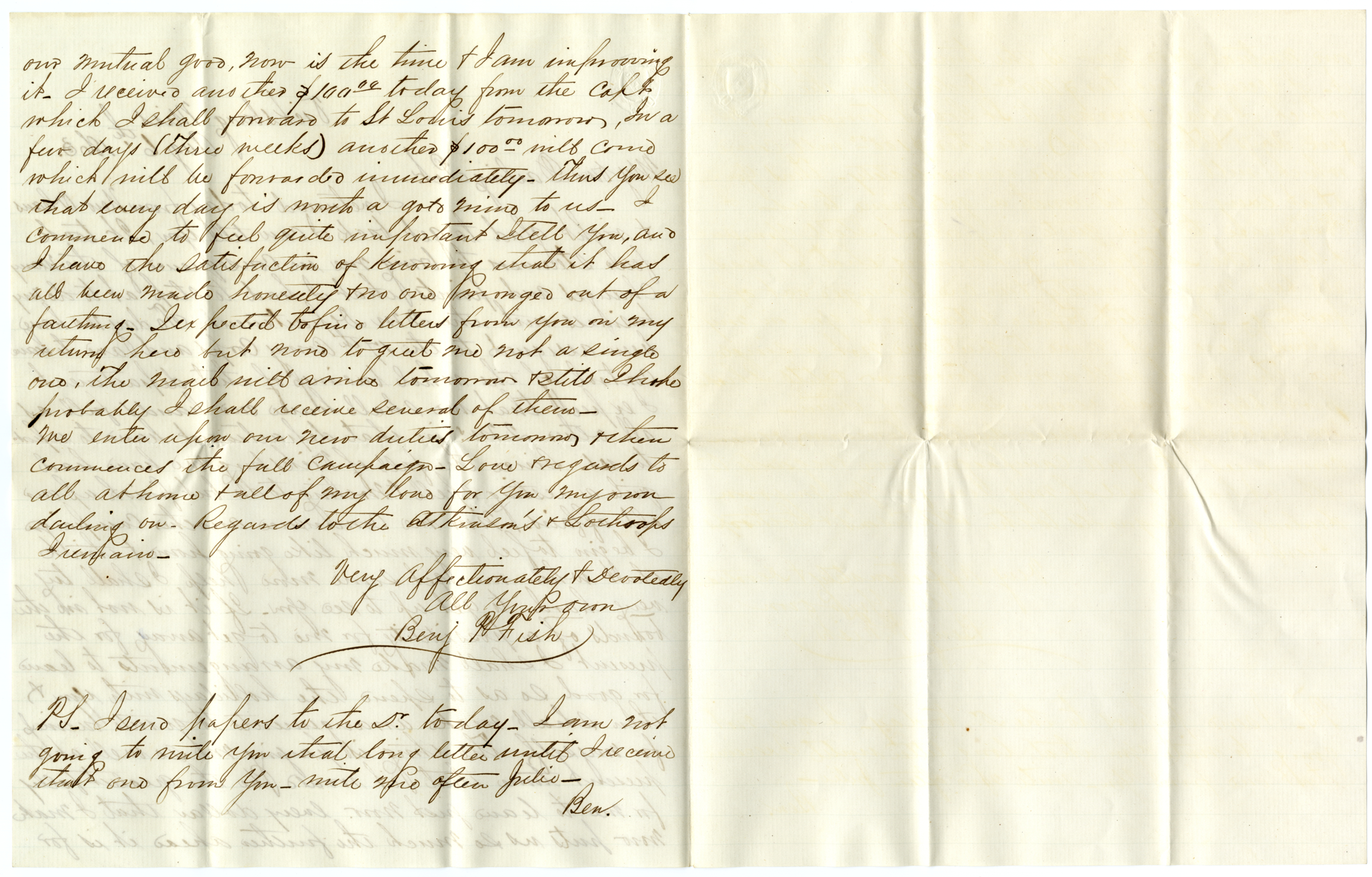 Letter to Julia Smith from Benjamin Fish written during the Civil War.