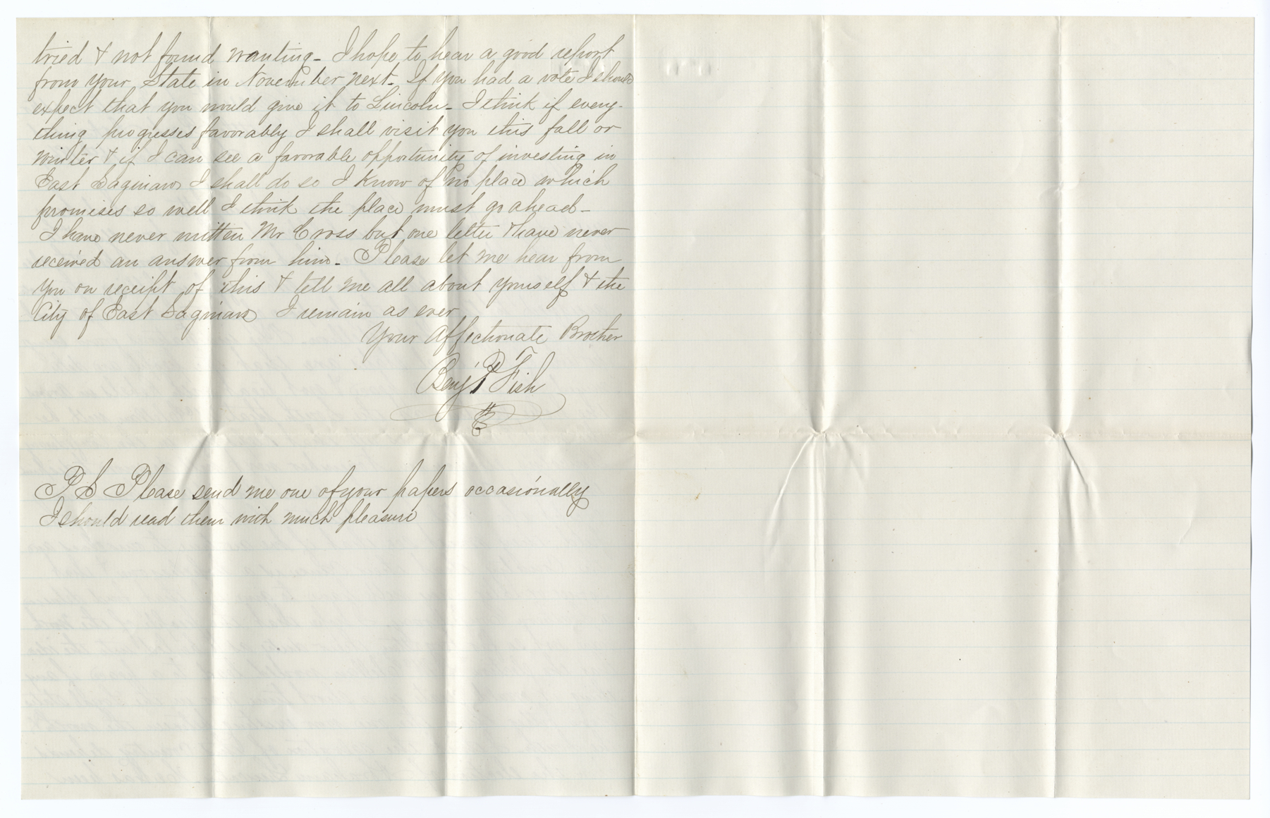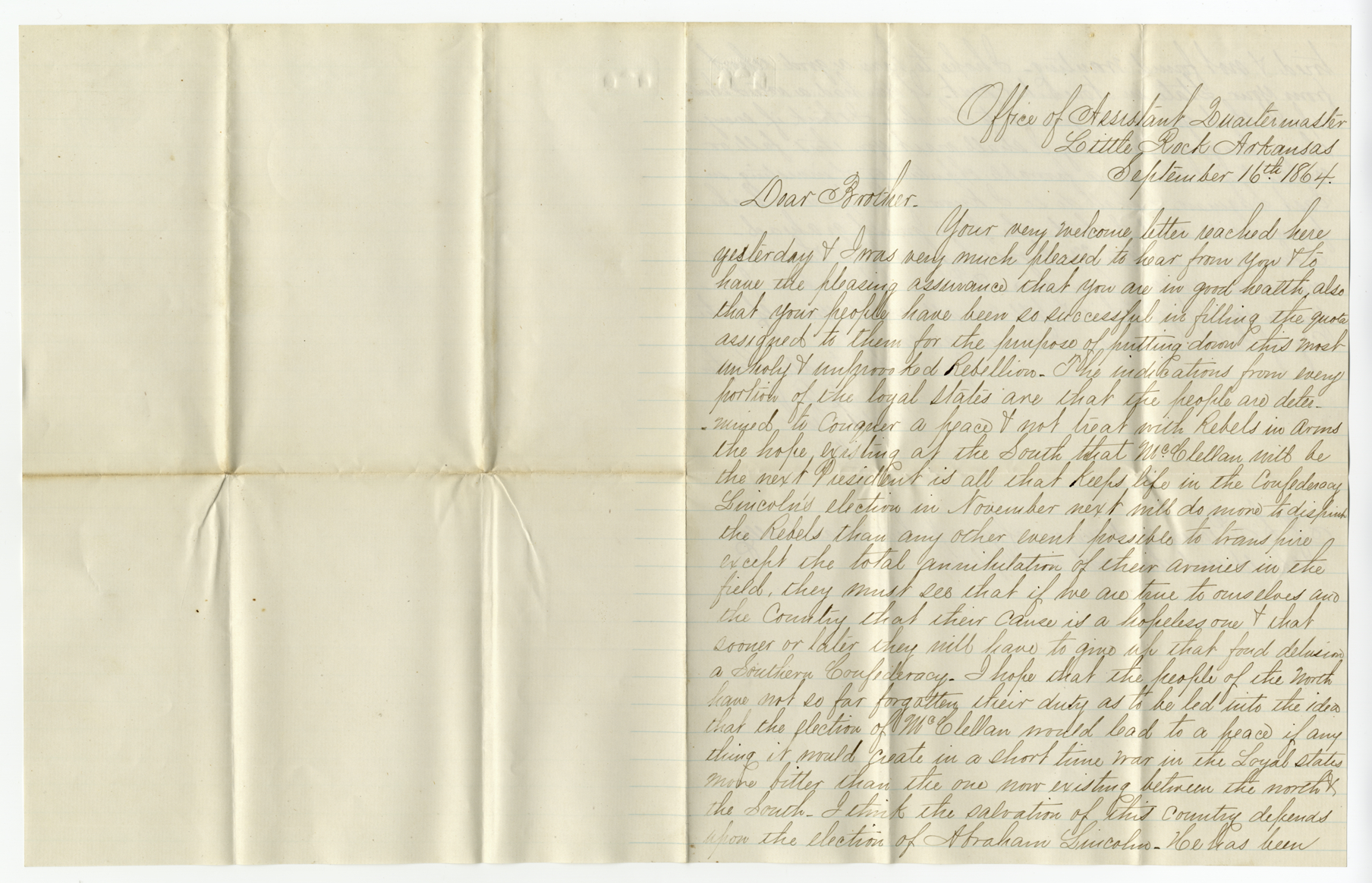 Letter from Benjamin Fish to his brother William S. Fish discussing the Civil War and upcoming presidential election.