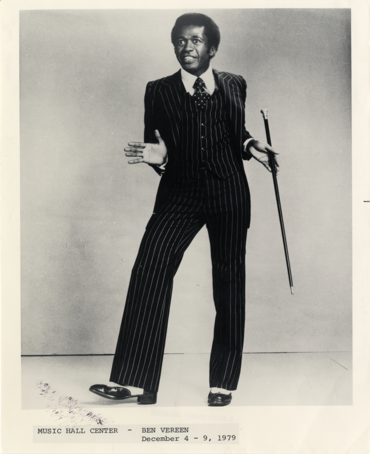 Portrait of dancer Ben Vereen. Printed on front: "Music Hall Center, Ben Vereen. December 4-9, 1979."