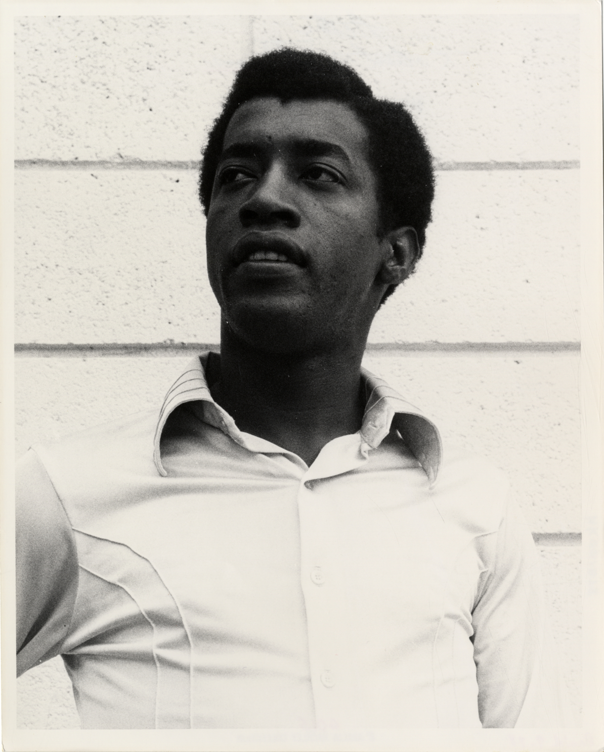 Portrait of actor Robert Williams. Stamped on back: "Detroit Repertory Theatre, 13103 Woodrow Wilson, Detroit, Michigan 48238." Handwritten on back: "Actor, Robert Williams, since 1971-78."