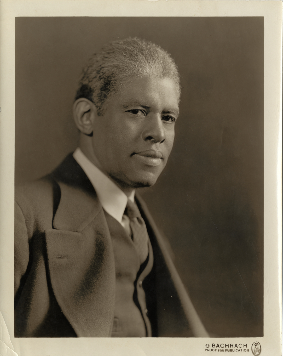 Portrait of tenor Roland Hayes. Printed on front: "[copyright] Bachrach. Proof for publication."