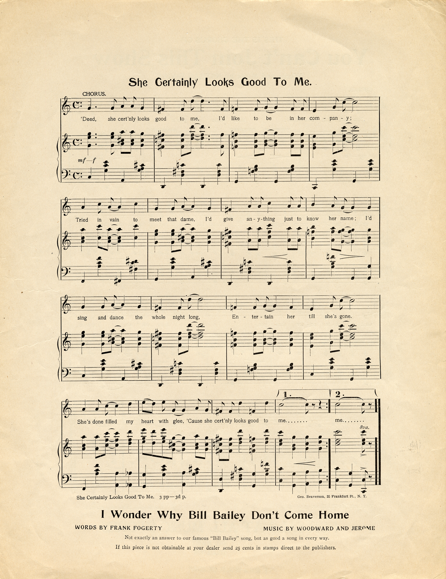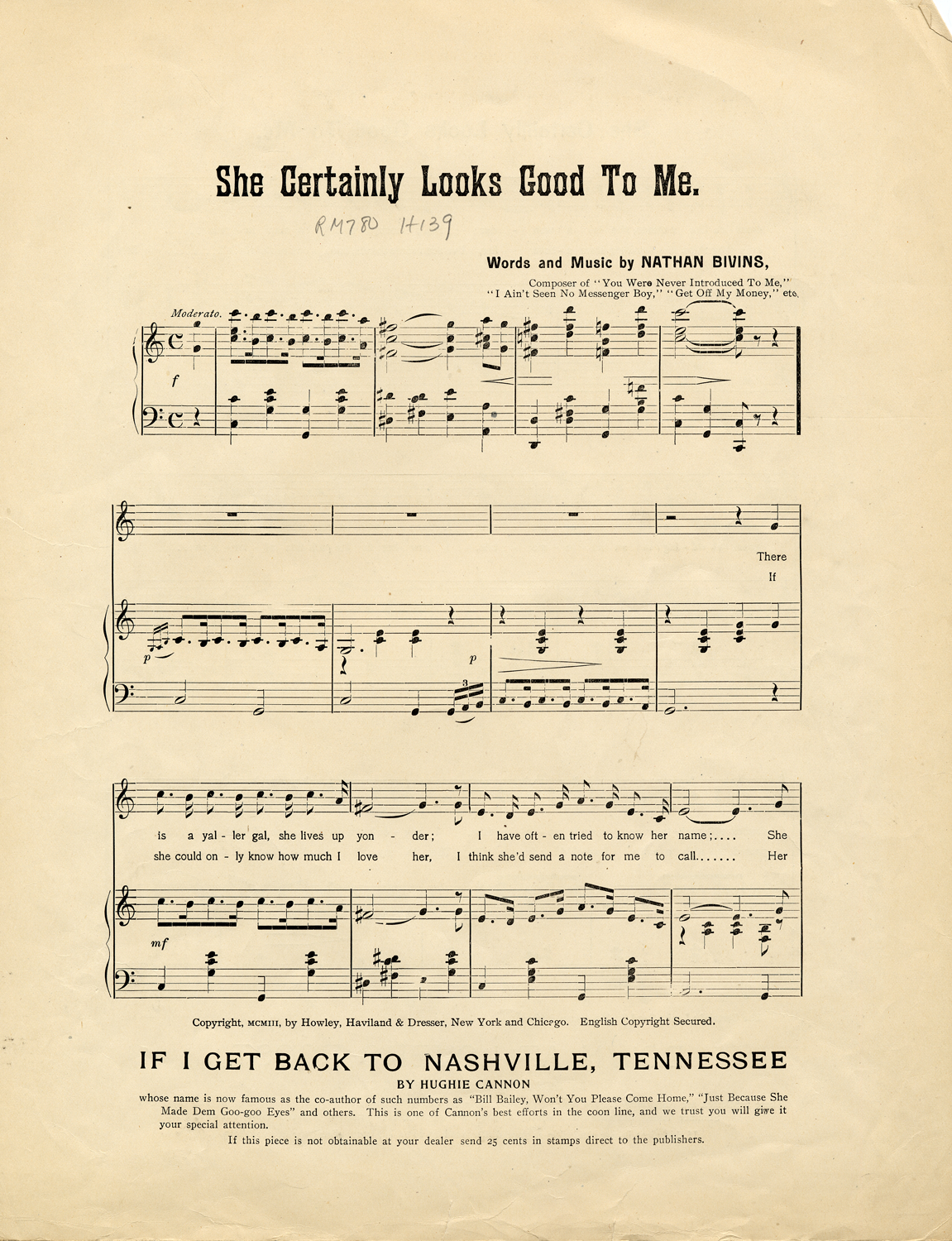 She certainly looks good to me / words and music by Nathan Bivins.