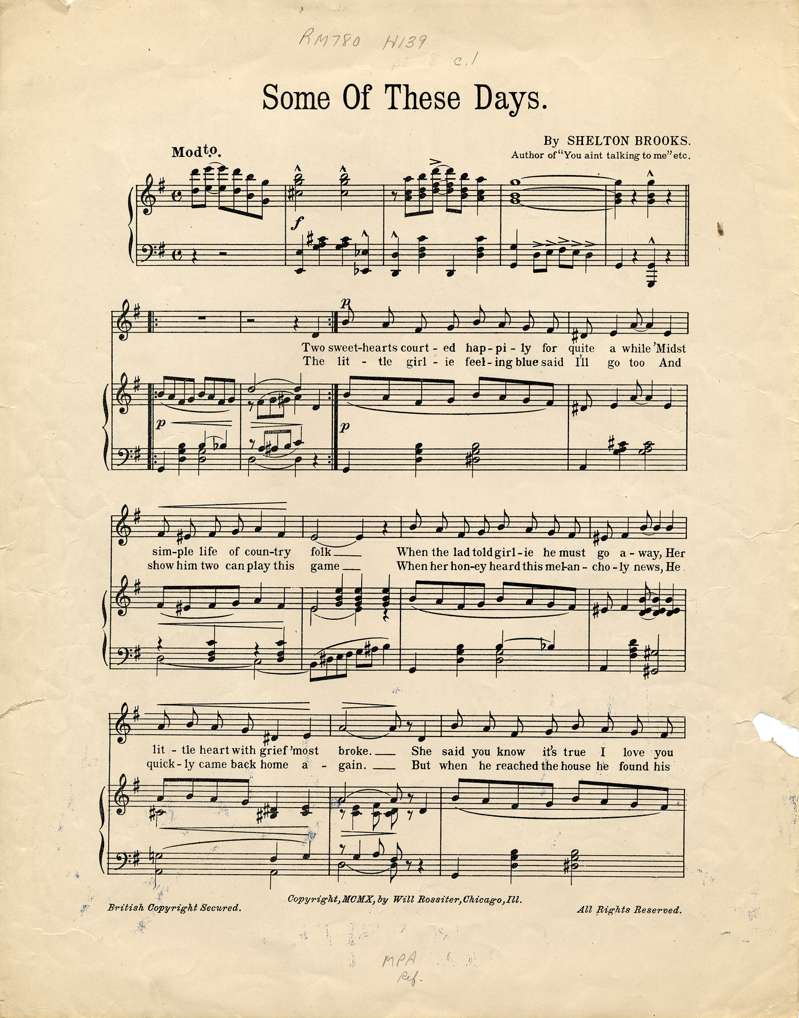 Some of these days / words and music by Shelton Brooks ; arr. by Will Dorsey.