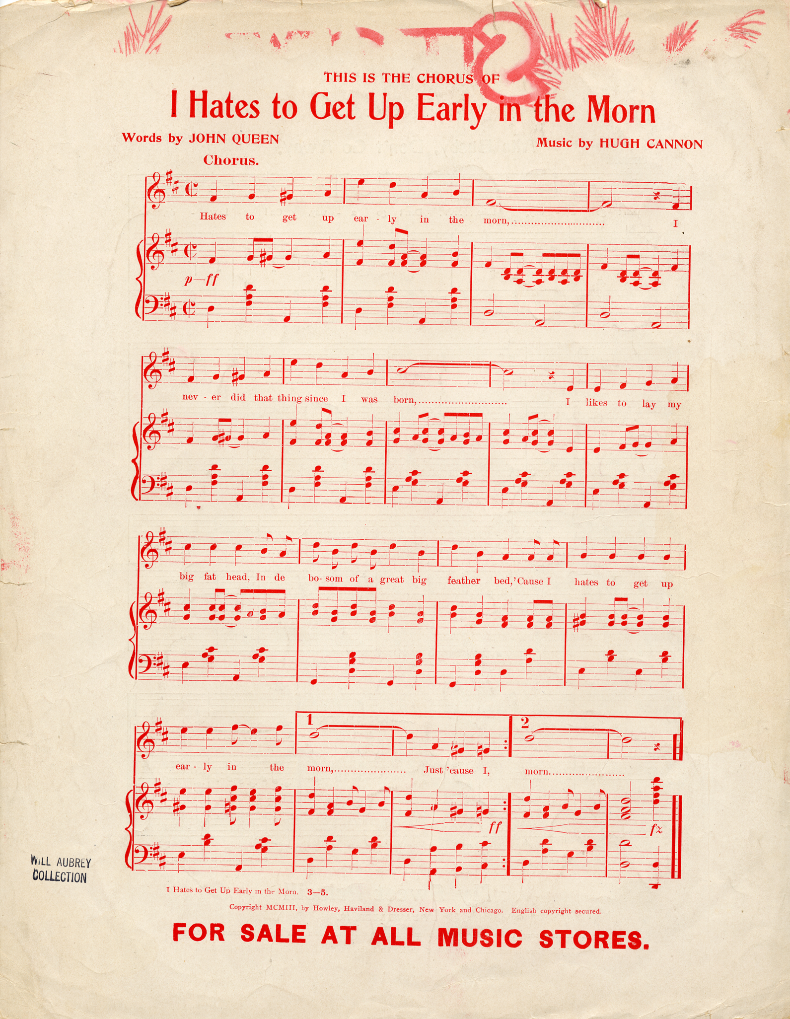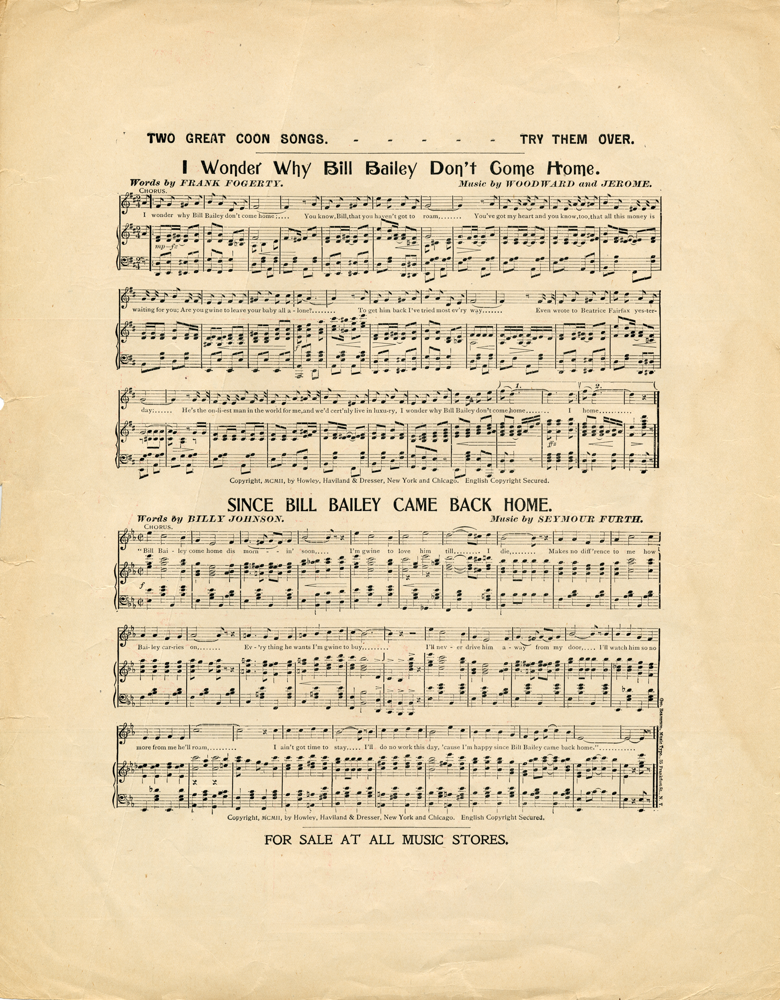 Words and music by Hughie Cannon, composer of 'Bill Bailey, won't you please come home', 'Just because she made dem goo goo eyes', etc.--Cover.