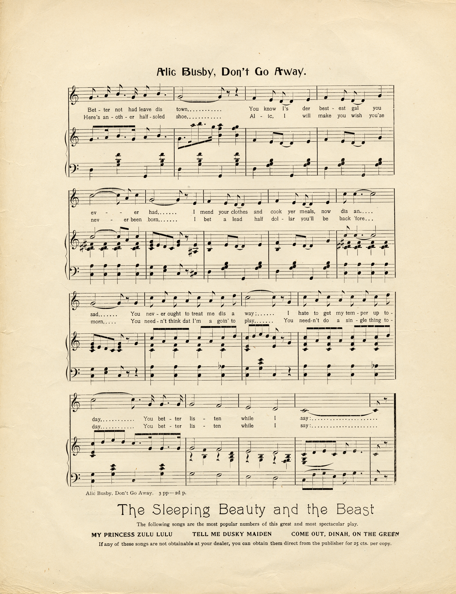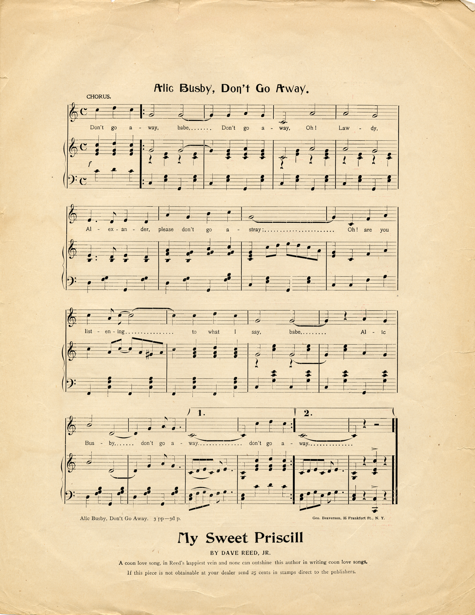 Alic Busby, don't go away / words and music by Hughie Cannon.
