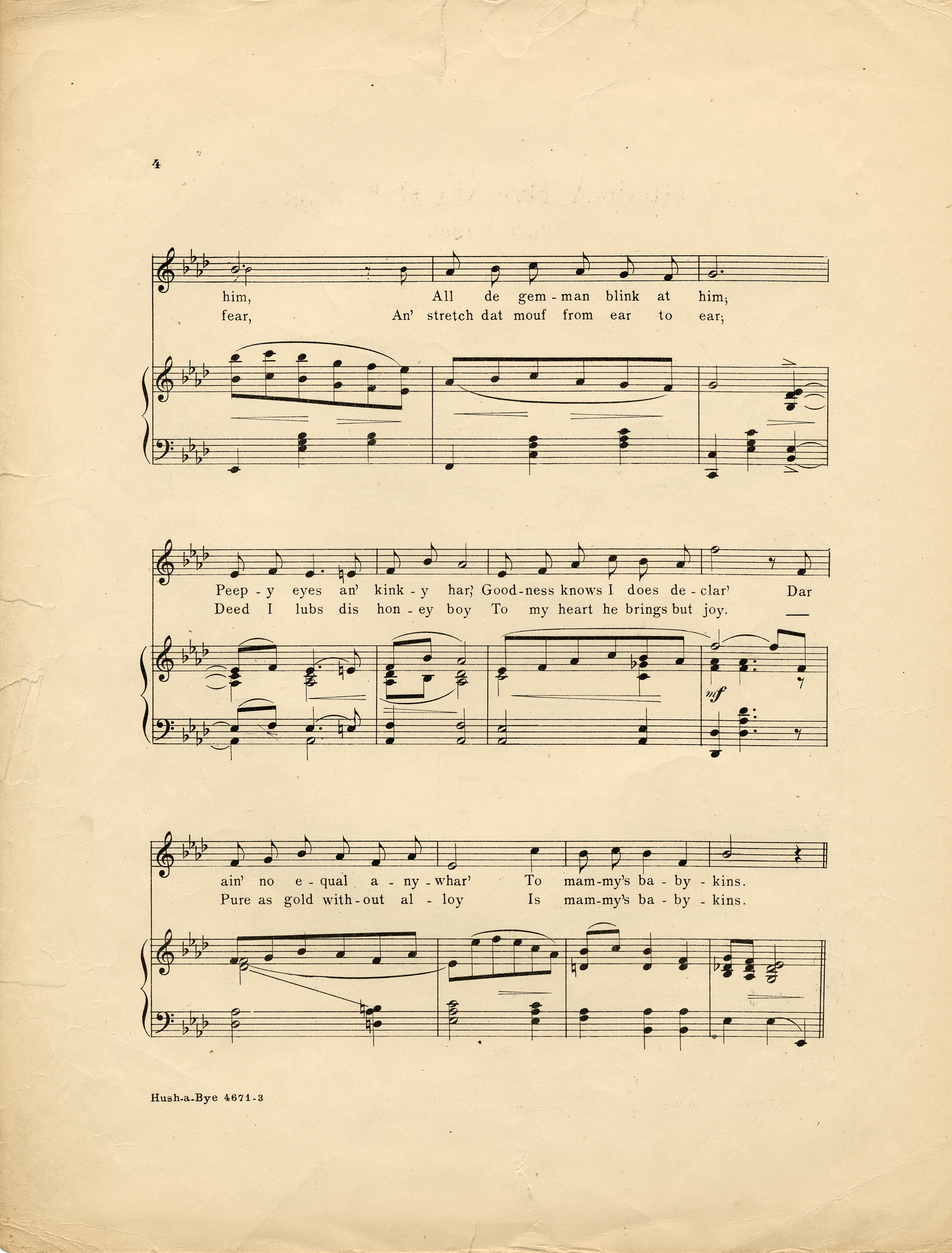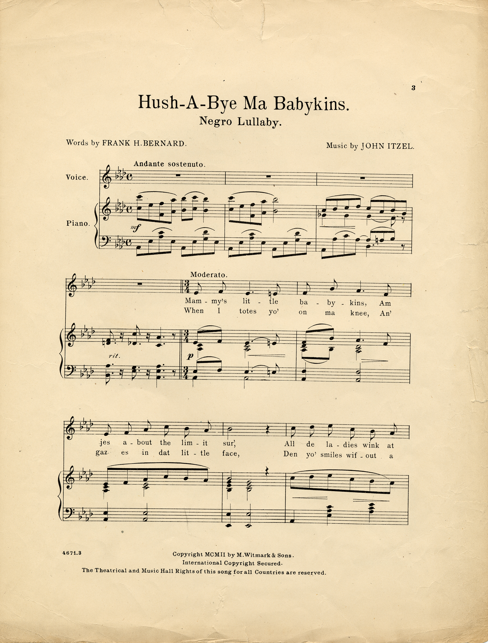 Hush-a-bye ma babykins : Negro lullaby / words by Frank H. Bernard ; music by John Itzel.