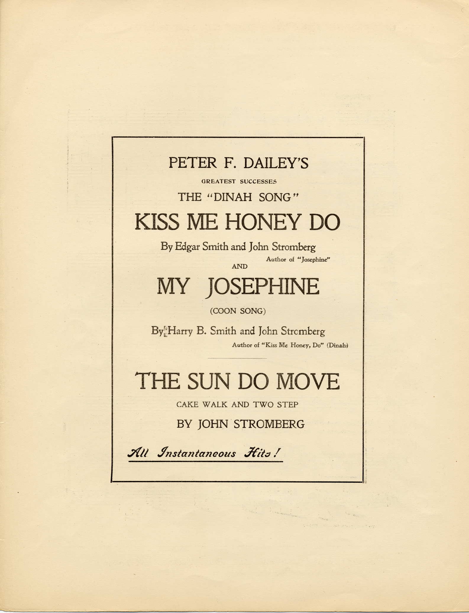 Cover ill.: photograph of Peter F. Dailey with name in lower right corner; drawing of African American man singing to an African American woman.