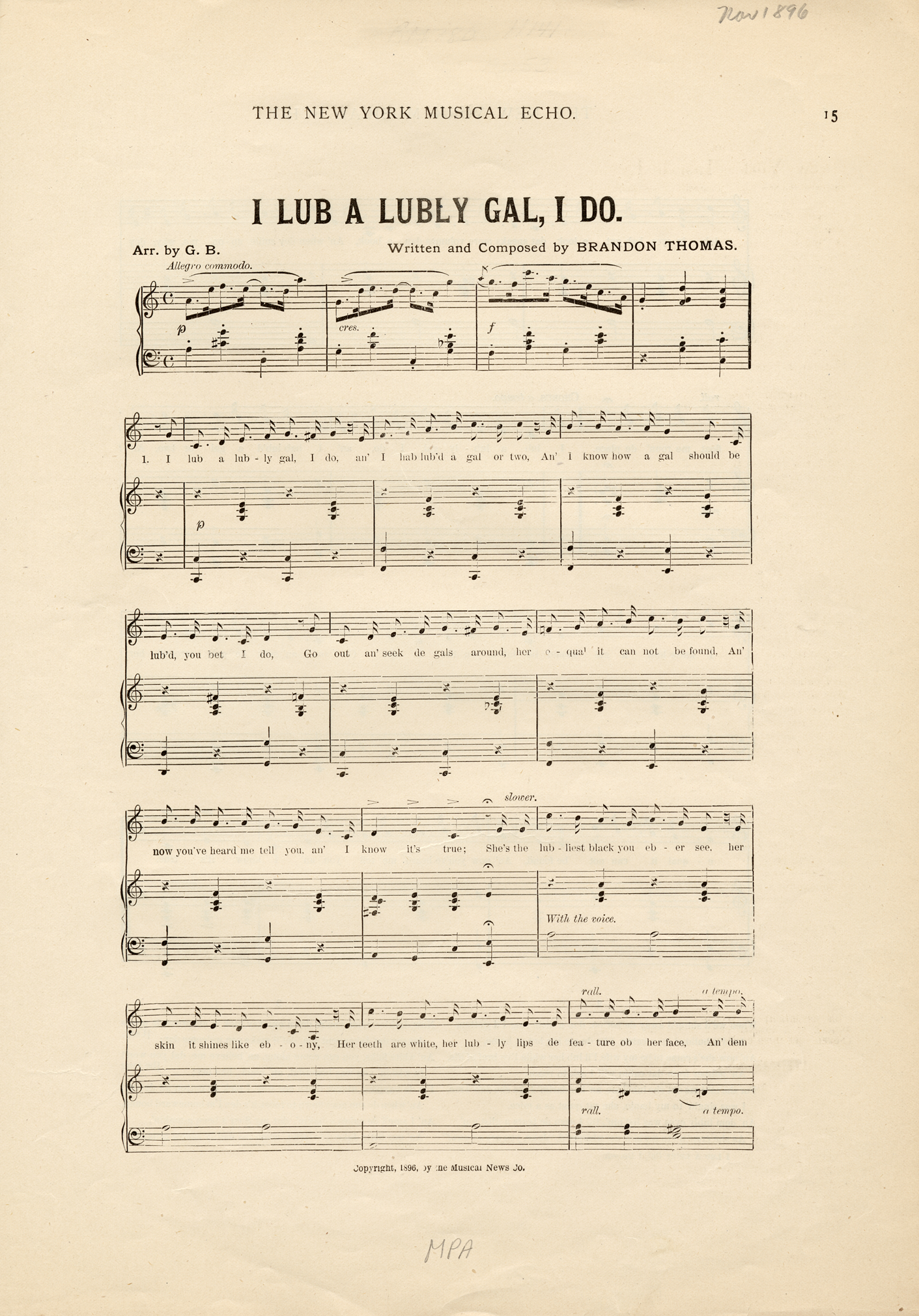 I lub a lubly gal, I do / written and composed by Brandon Thomas ; arr. by G. B.