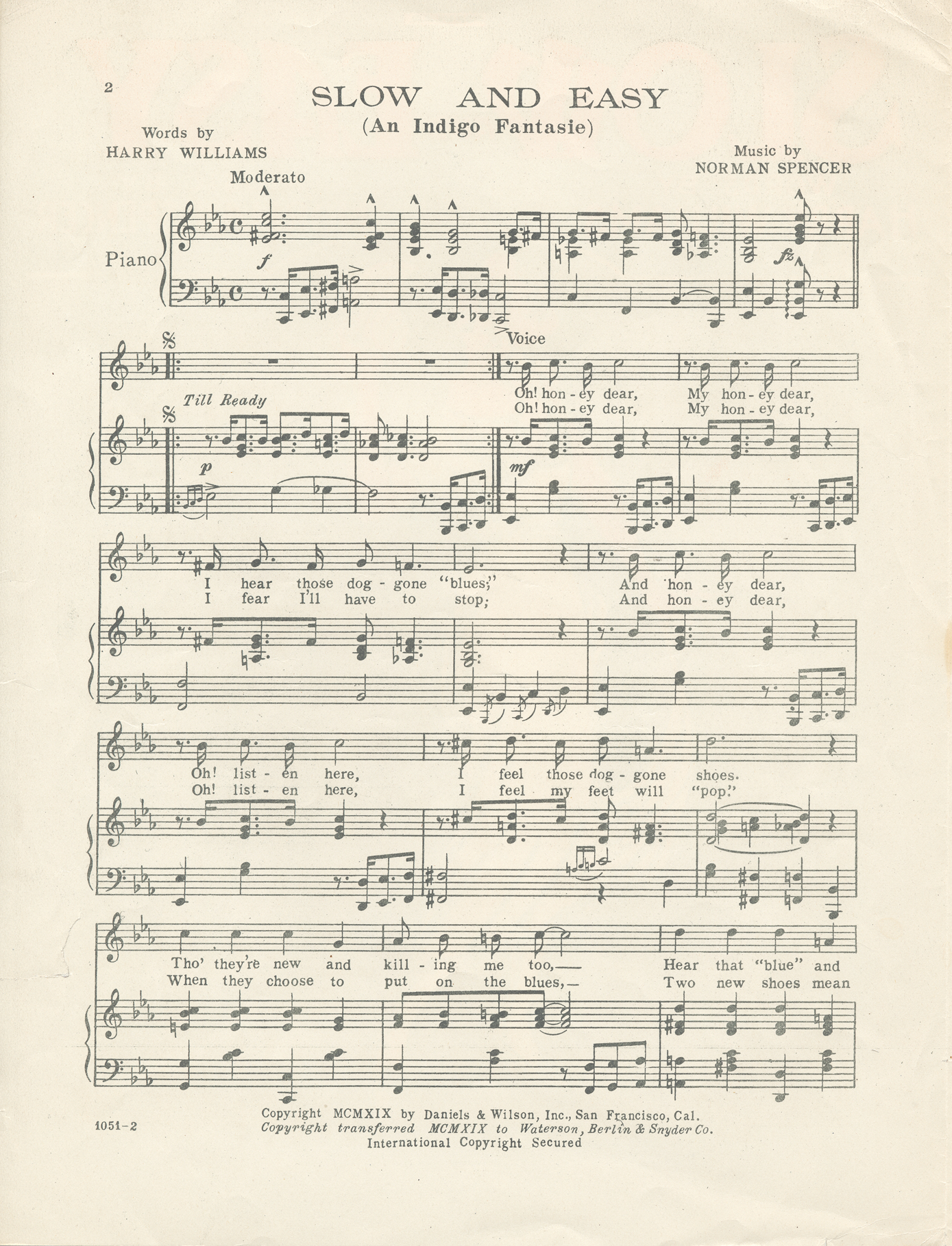 Slow and easy : an indigo fantasie / words by Harry Williams ; music by Norman Spencer.