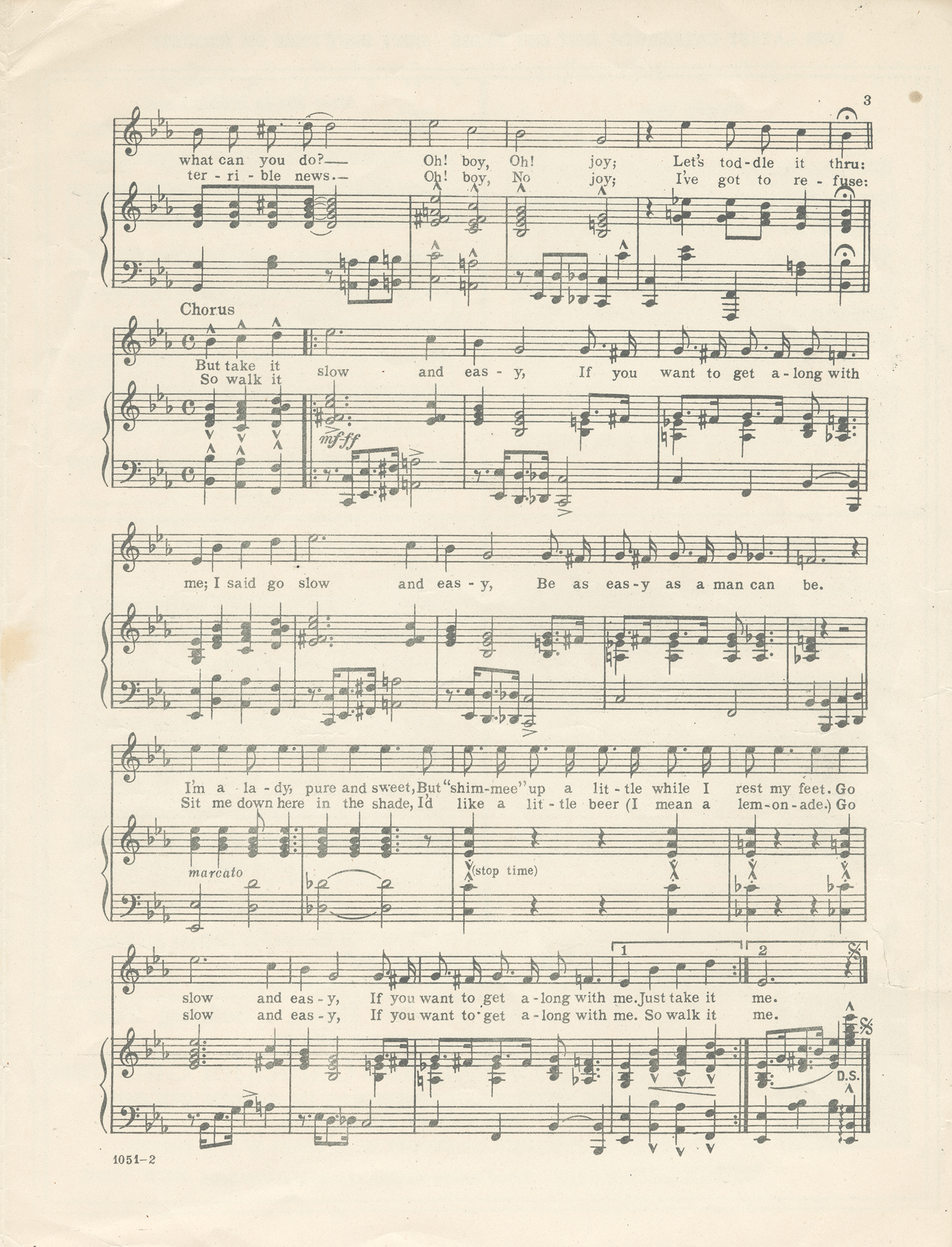 First line of chorus: But take it slow and easy.