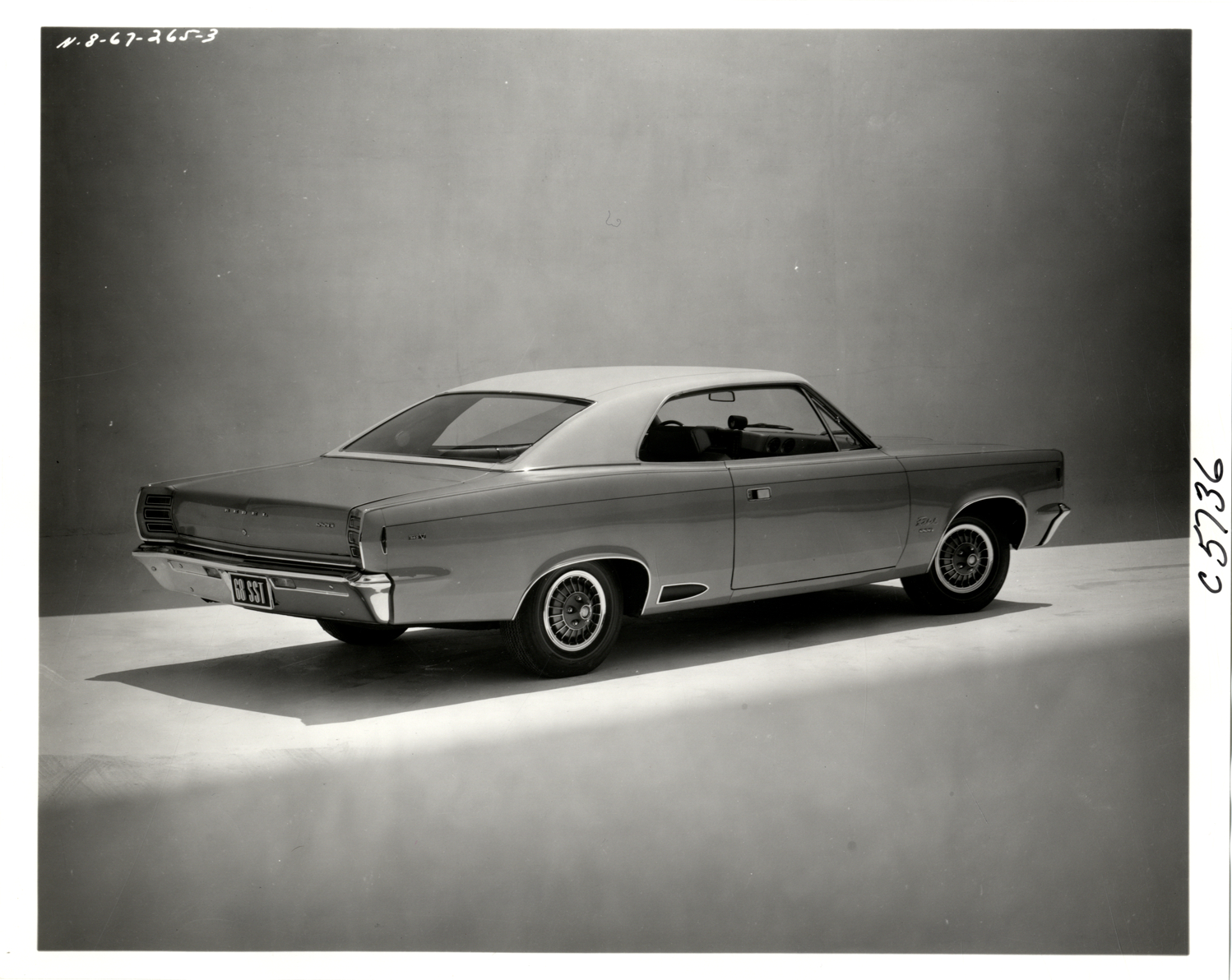 View of a 1968 AMC Rebel SST coupe. Handwritten on back: "Rebel SST 2 door hardtop."