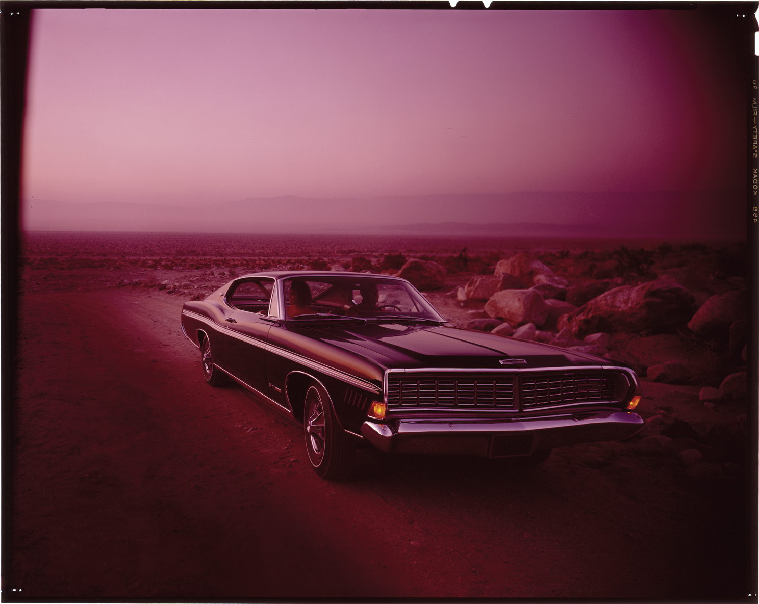 View of a man and woman in a 1968 Ford coupe. Label on sleeve: "Ford Motor Co., Ford, 1968."