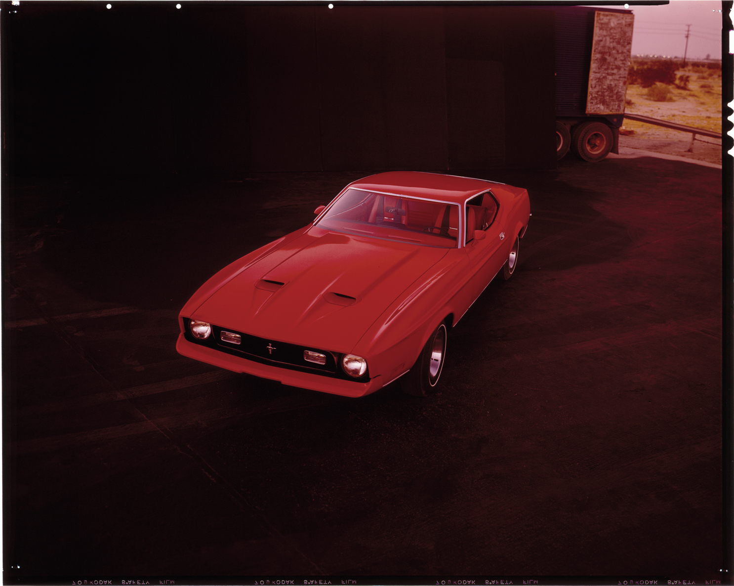 View of a Ford Mustang coupe. Label on sleeve: "Ford Motor Co., Ford Mustang, 1971-72."