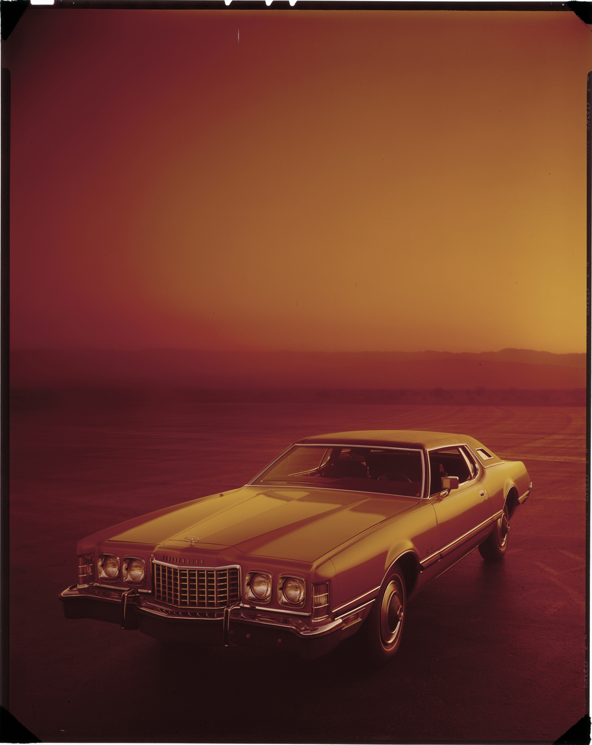 View of a Ford Thunderbird coupe. Label on sleeve: "Ford Motor Co., Ford Thunderbird, 1973-1976."