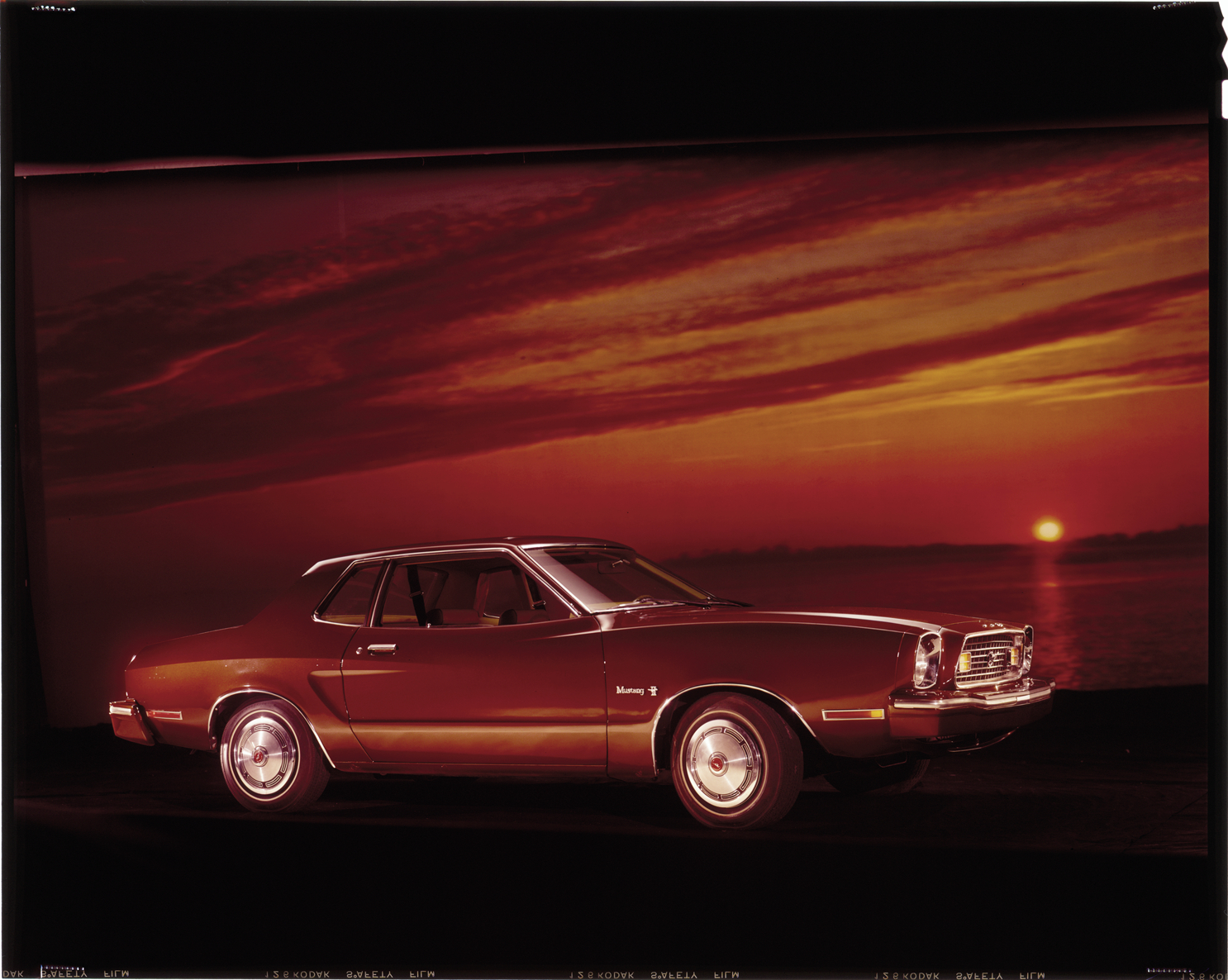 View of a Ford Mustang coupe. Label on sleeve: "Ford Motor Co., Ford Mustang, 1974-75."