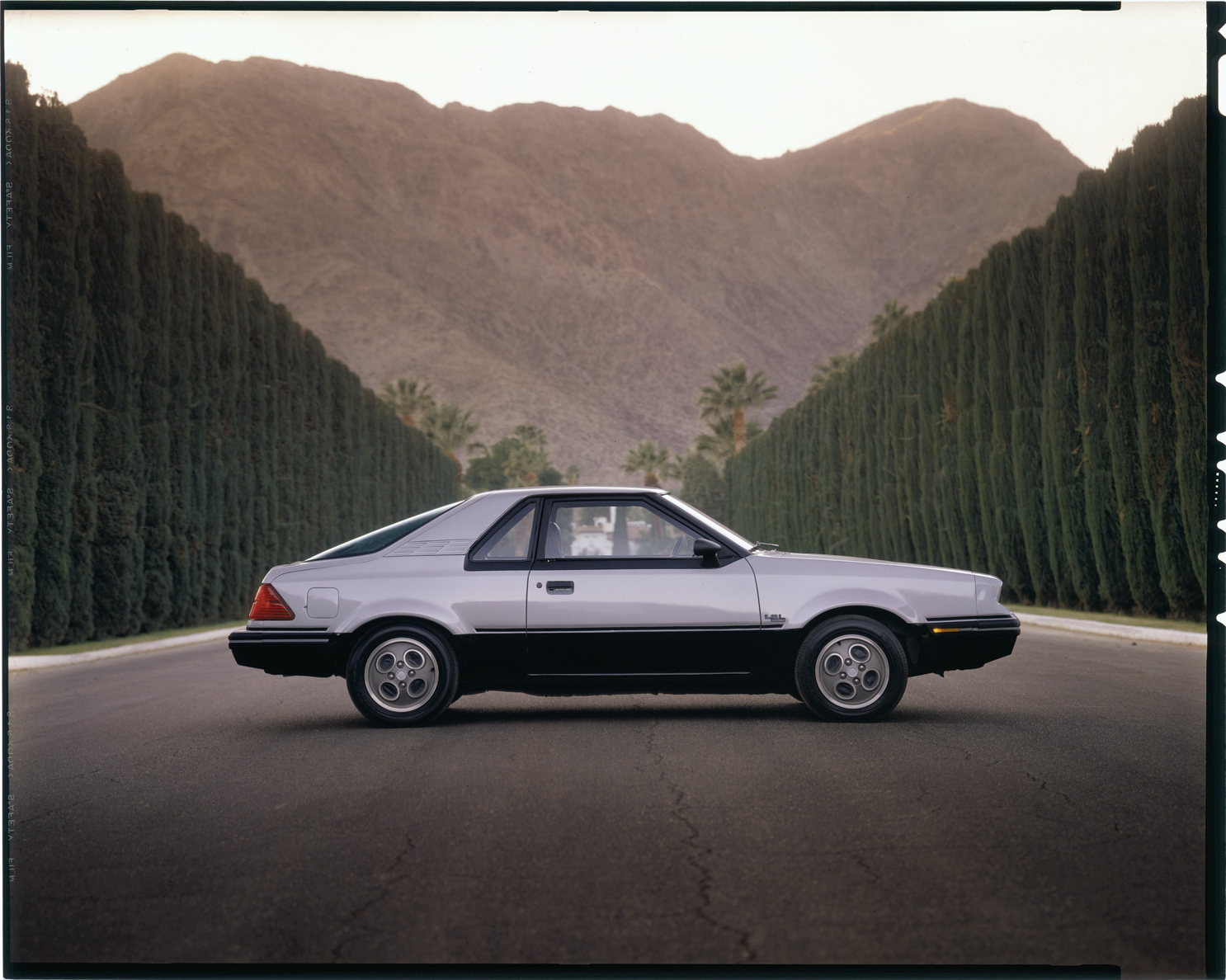View of a Ford EXP coupe. Label on sleeve: "Ford Motor Co., Ford EXP, 1982-88."